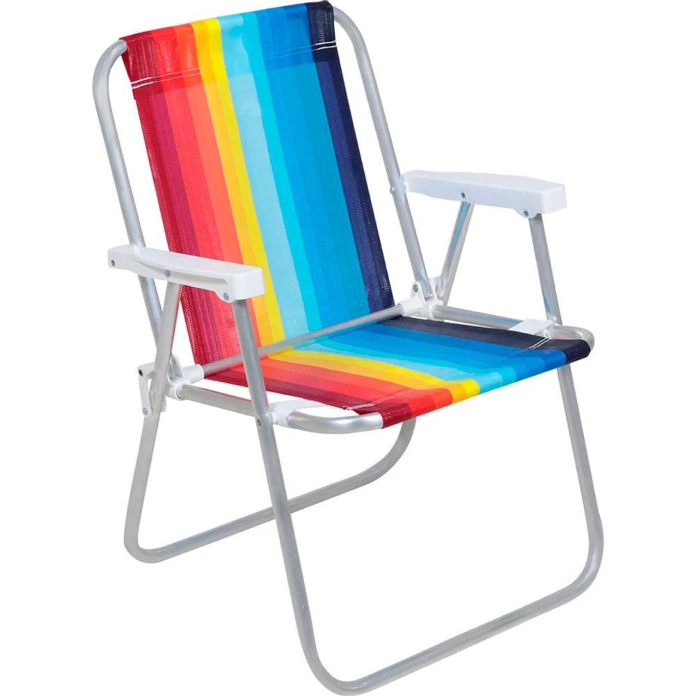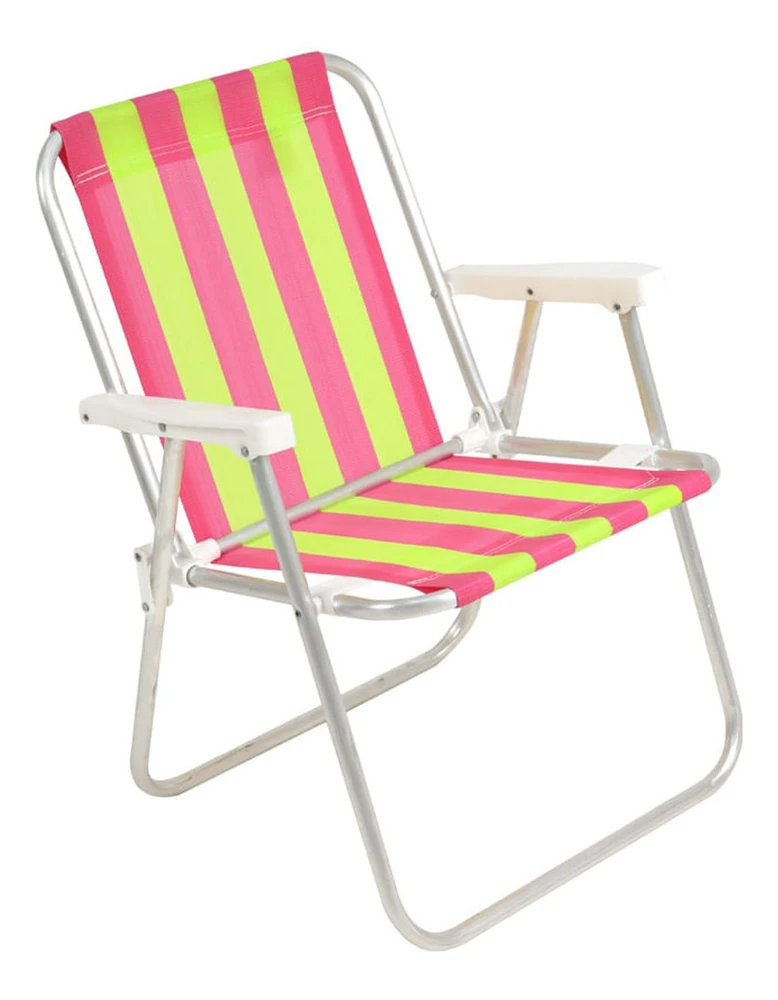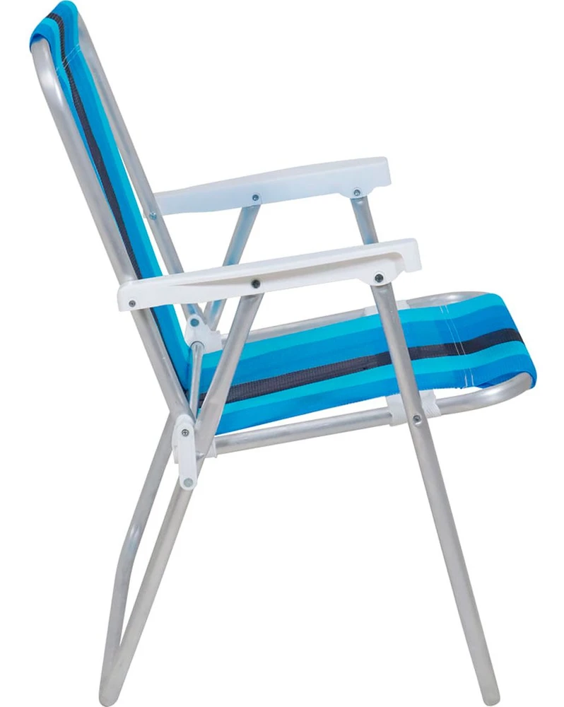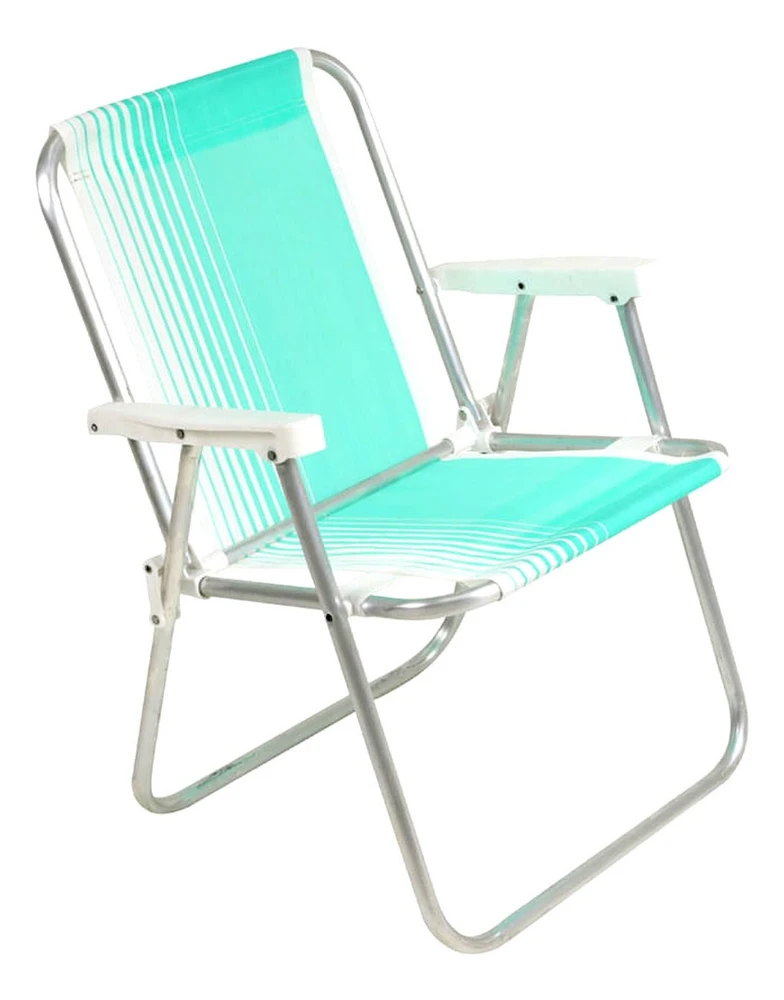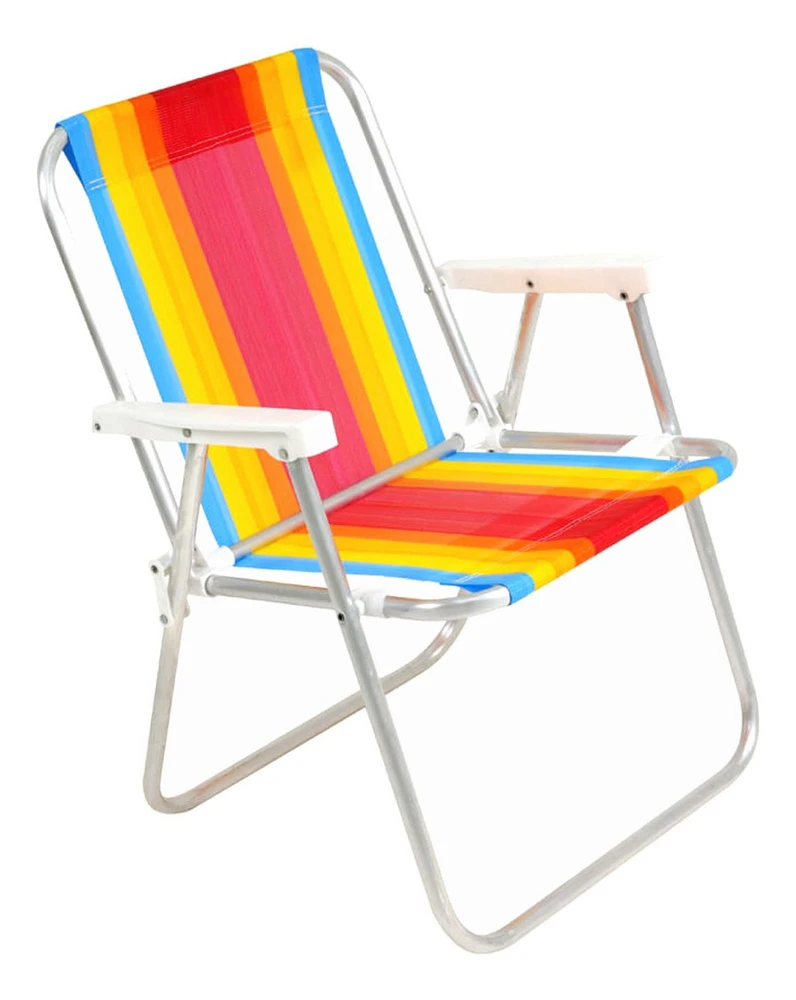 Cadeira de Praia Alta Alumínio Estampa Sortida - Bel FixA Cadeira de Praia Alta da Bel Fix oferece o máximo conforto em uma estrutura leve e resistente, perfeita para quem adora curtir o verão com tranquilidade. Fabricada em alumínio, material que garante resistência à corrosão e alta durabilidade, essa cadeira é ideal para o uso na praia, no campo ou até em eventos ao ar livre.Conforto e Ergonomia: com apoios de braço em polipropileno e altura ideal para sentar e levantar com facilidade, ela proporciona uma experiência agradável em qualquer ambiente. O assento, a 35 cm do chão, permite o descanso perfeito, enquanto a estrutura em alumínio leve e prática facilita o transporte.Design Dobrável e Prático: seu sistema dobrável permite que você a carregue para onde quiser, ocupando pouco espaço no carro ou em casa. Basta dobrá-la e ela está pronta para ser guardada ou transportada de maneira prática e rápida.Estilo e Diversão: disponível em cores e estampas sortidas, essa cadeira é ideal para quem quer adicionar um toque de alegria ao seu passeio. O visual vibrante das estampas é a cara do verão e combina com qualquer ambiente ao ar livre.Suporta Até 110 kg: robusta e resistente, a Cadeira de Praia Alta da Bel Fix suporta até 110 kg, atendendo as necessidades de diferentes perfis de usuários com segurança e qualidade. Desfrute de momentos de lazer com total tranquilidade e conforto!EspecificaçõesMarca: Bel FixMaterial: Alumínio, polietileno e polipropilenoMedidas: 28 cm (largura) x 36 cm (comprimento) x 37 cm (altura)Peso suportado: 110 kgAltura do assento: 35 cmDobrável: Sim Apoio para os braços: SimCores e estampas: Sortida