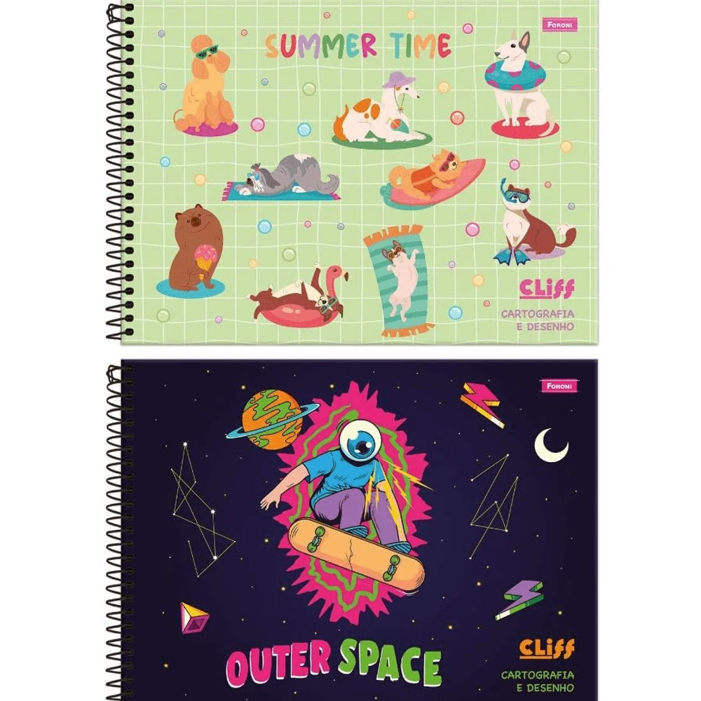 Caderno de Desenho Universitário, Capa Dura, 80 Folhas, Marca Foroni.