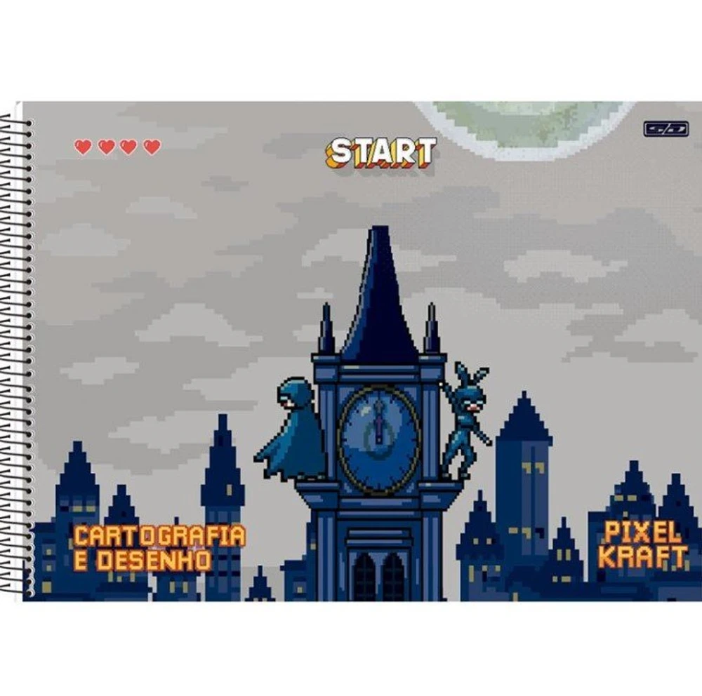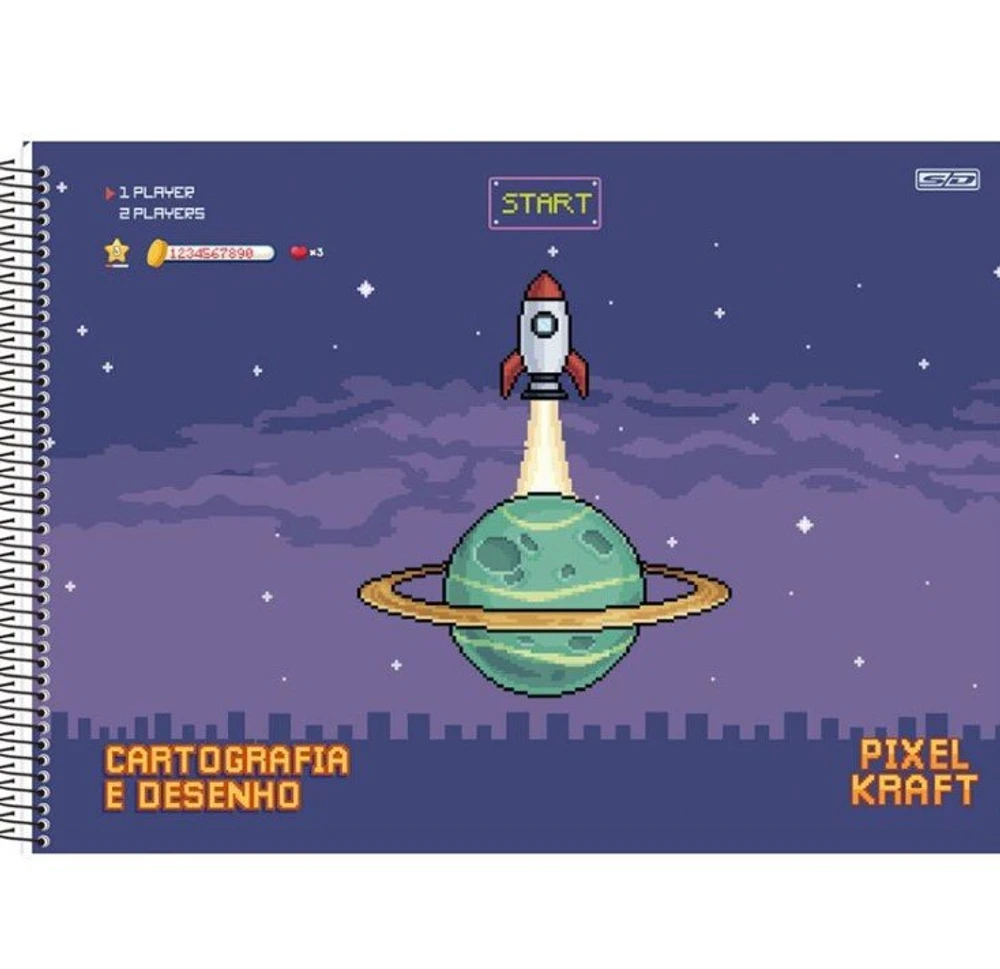 Em um mundo cheio de pixels, nossos herois vivem muitas aventuras e todas elas estampam os cadernos da SD. Com capas divertidas e coloridas, o publico infantil vai se aventurar junto com nossos amigos quadriculados.Caderno de Desenho Capa Dura Espiral Pixel Kraft - Miolo 63g- Formato: 275mm x 200mm- Folhas: 60