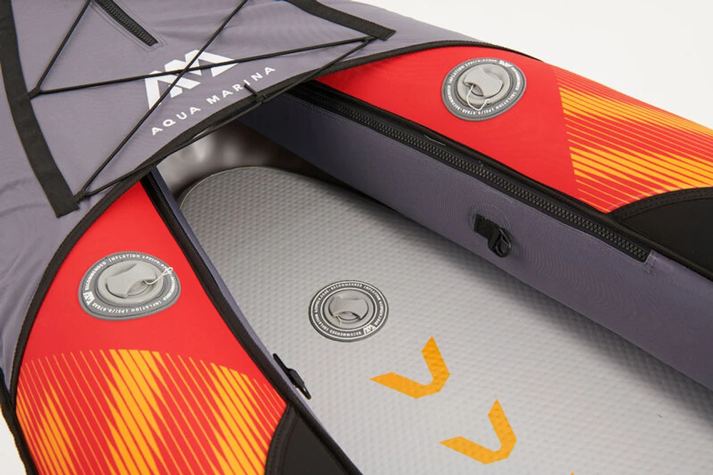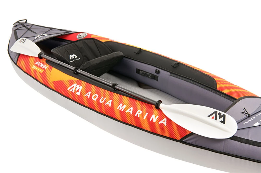 O design do casco de baixo balanço, quando combinado com o deck rígido de alta pressão drop-stitch, resulta em mais deslizamento, melhor rastreamento e remada sem esforço. Pesando apenas 13,4 kg para modelos solo , respectivamente, o MEMBA pode ser embalado ordenadamente na mochila recém-projetada para fácil armazenamento e transporte conveniente.