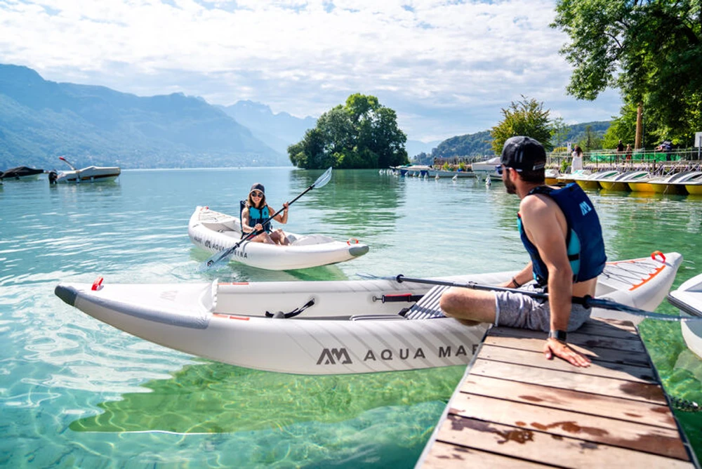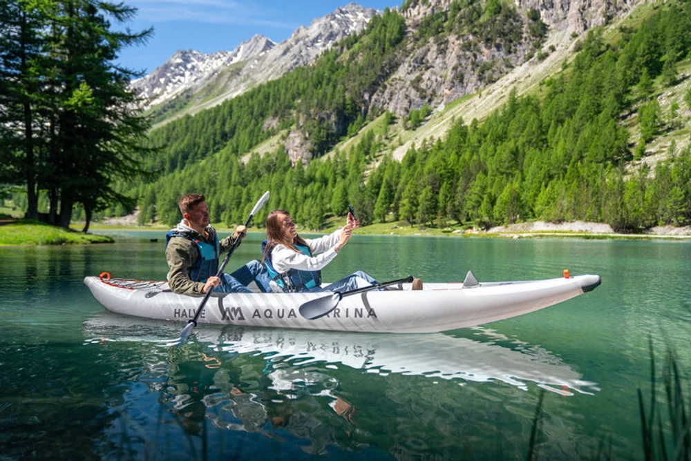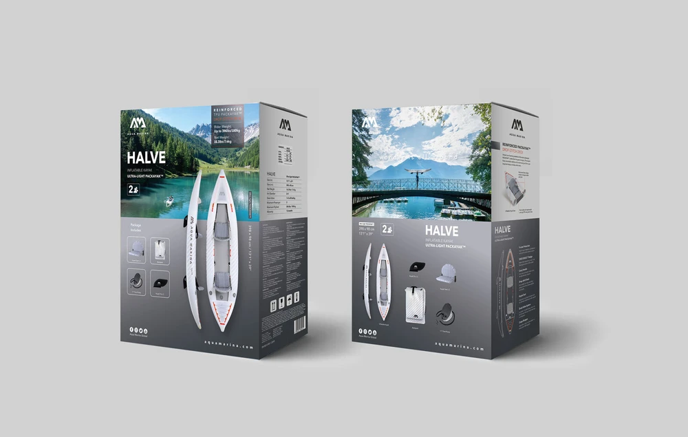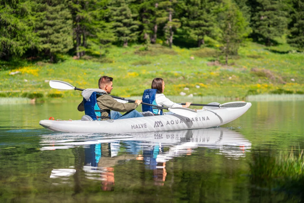 Experimente nosso revolucionário caiaque HALVE – uma maravilha leve, 50% mais leve que os caiaques tradicionais. Seu design esportivo e urbano cativa com um charme futurista. Desfrute de estabilidade notável e remada suave com o design de tanque super grande e deck drop-stitch, perfeito para várias condições de água. Alterne sem esforço entre os modos solo e tandem, atendendo a todos os aventureiros. Feito com material TPU inovador, é mais forte, dobrável e fácil de guardar. Delicado, durável e adornado com tecnologia de impressão digital ECO-PRINT™ para padrões duradouros. Redefina suas aventuras de caiaque com HALVE.
