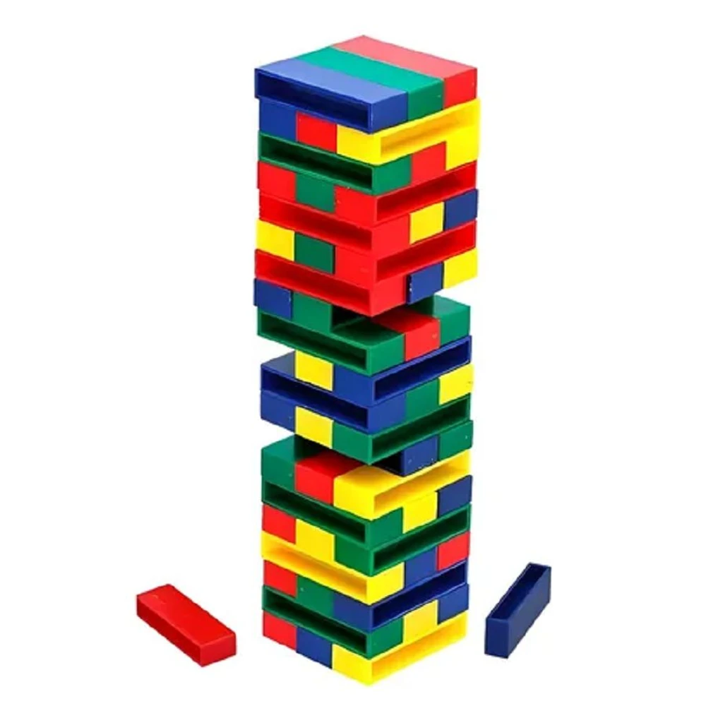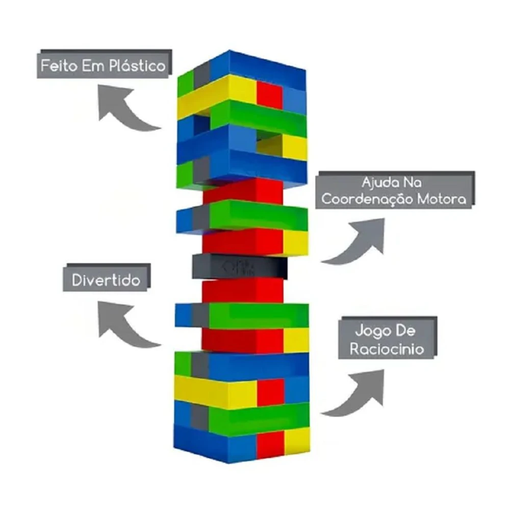 Monte a torre com os 45 blocos coloridos formando uma estrutura equilibrada.