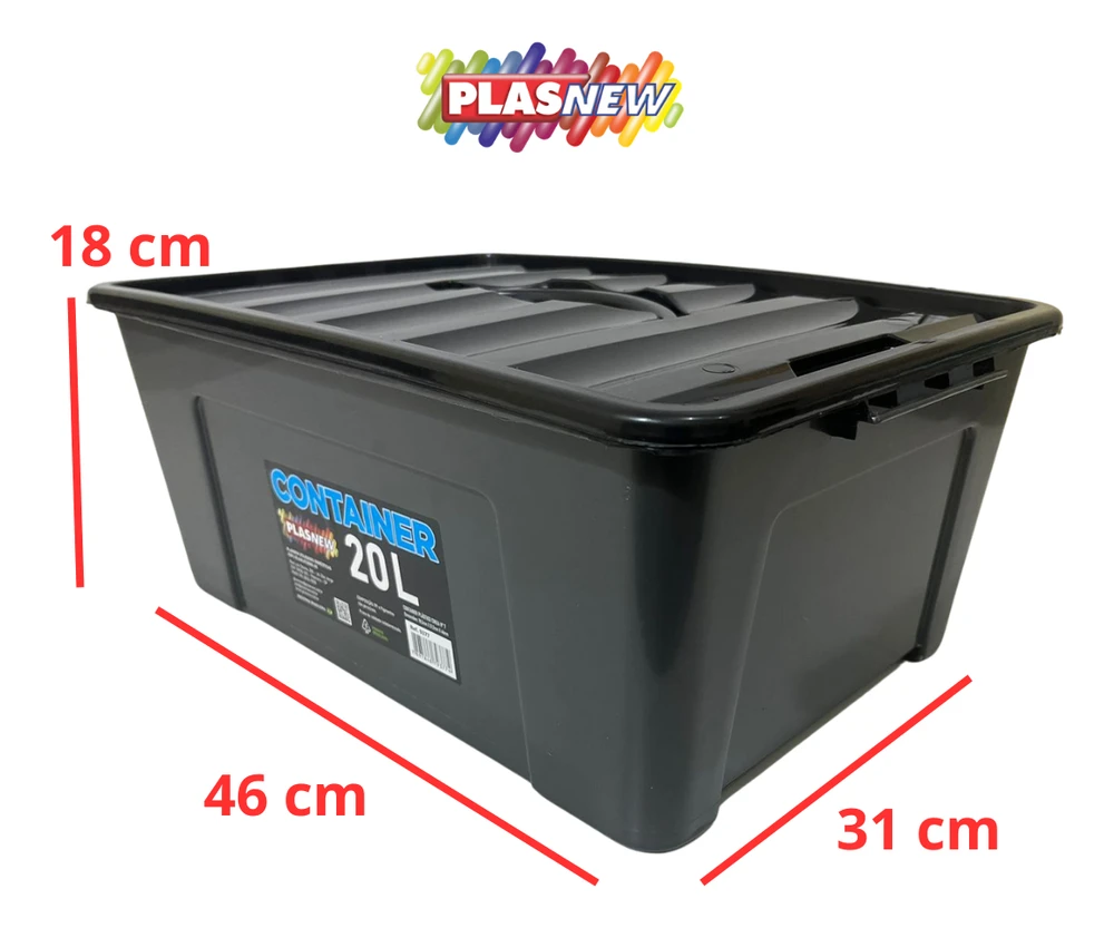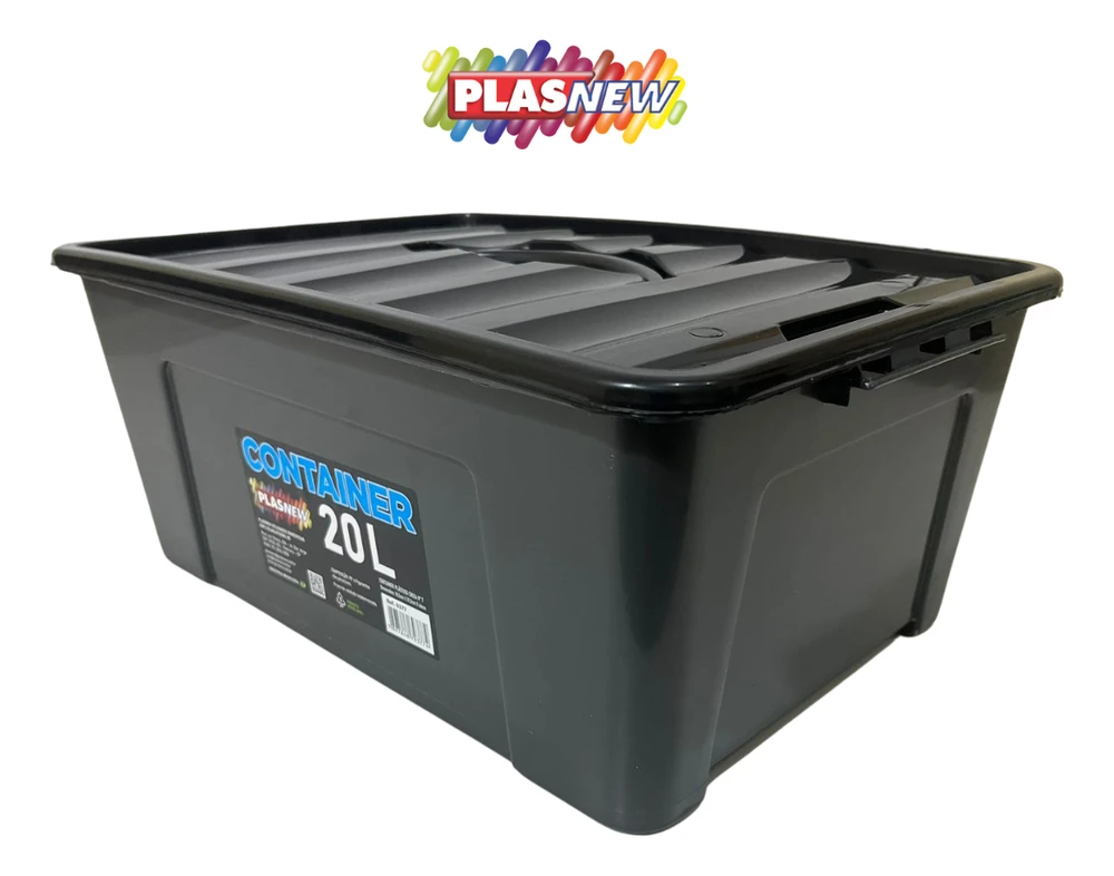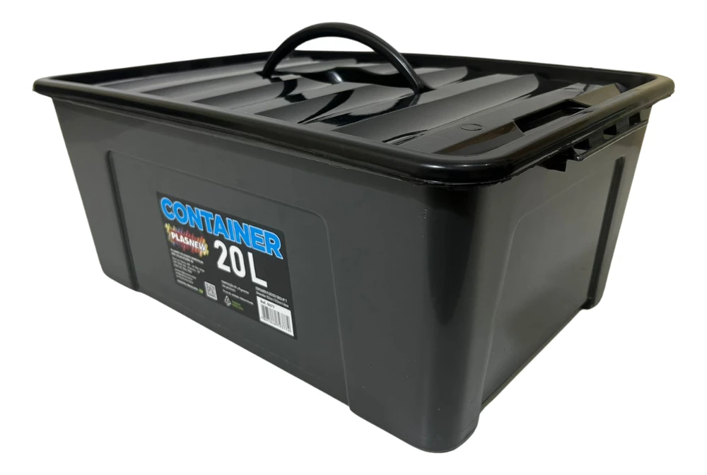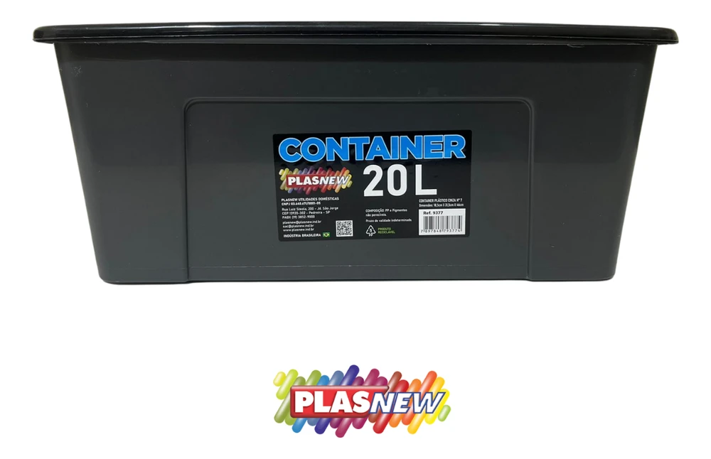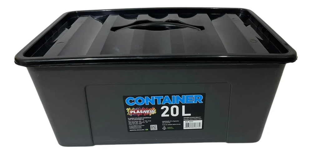 Caixa Container Plástico Cinza Com Trava e Alça 20 Litros 9377