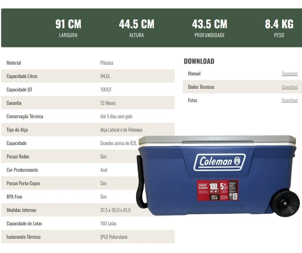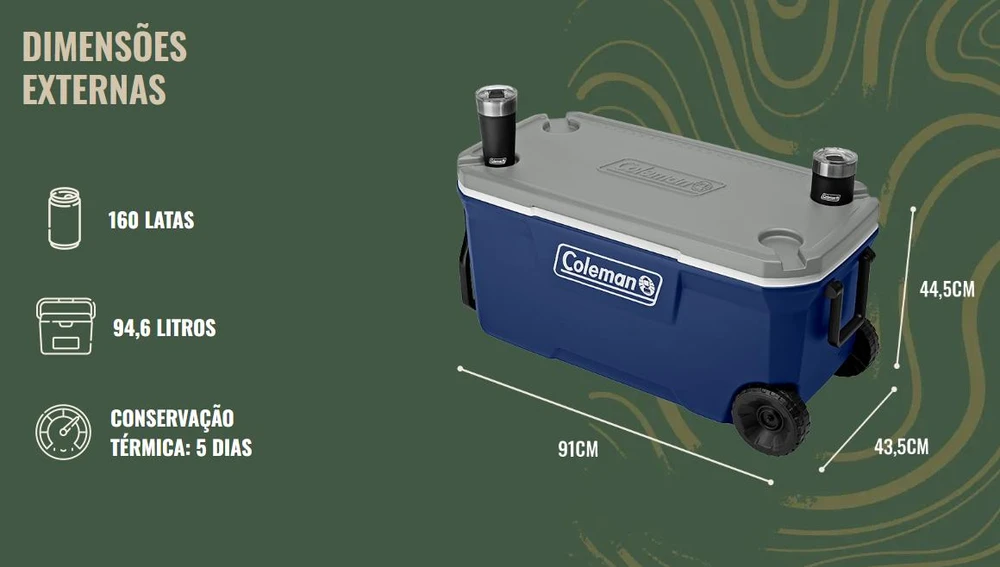 - Modelo: Caixa Térmica Lakeside com Rodas 316 Series 100Qt 94,6 Litros - Coleman