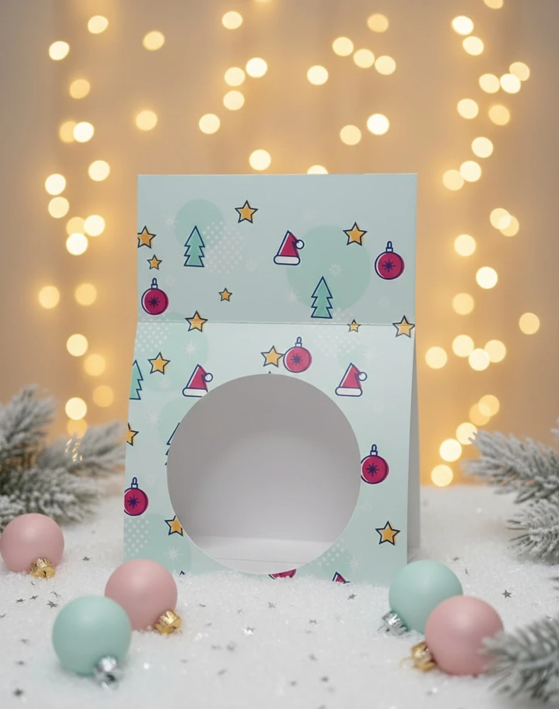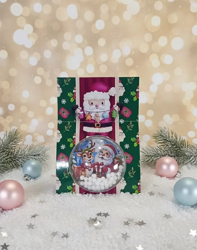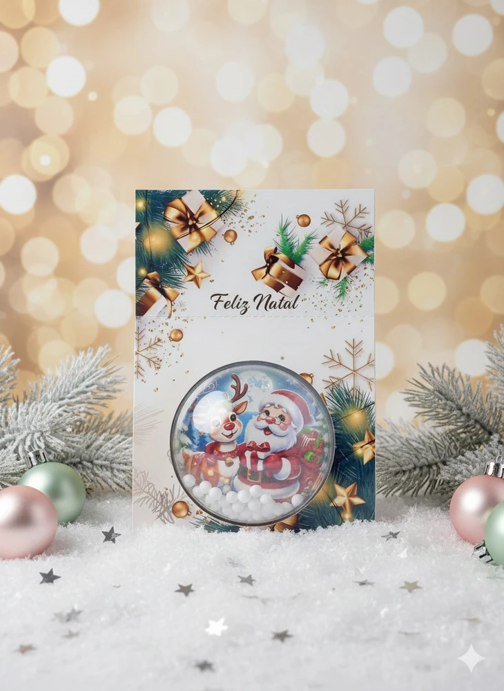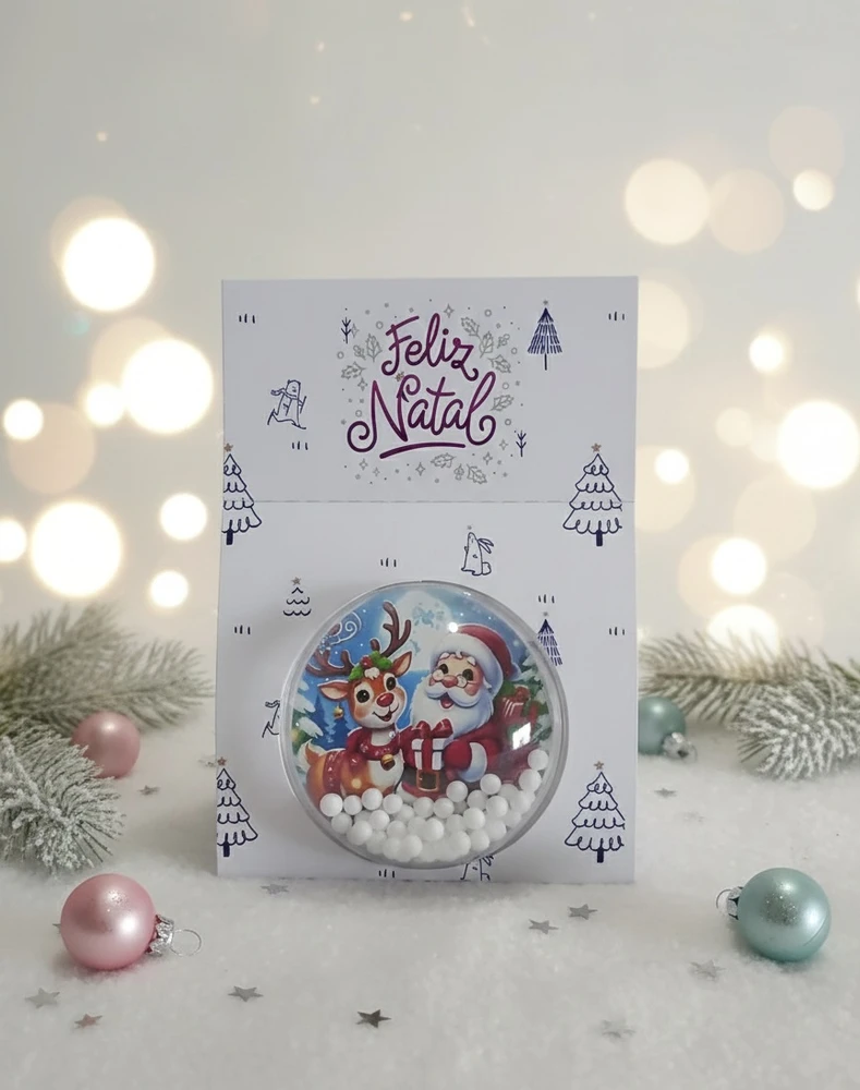 Cada embalagem traz estampas natalinas encantadoras, com design exclusivo e uma esfera acrílica transparente que protege e destaca a bola de Natal, criando um efeito visual único e sofisticado. Ideal para quem busca uma apresentação impecável, seja para uso pessoal ou para encantar clientes.