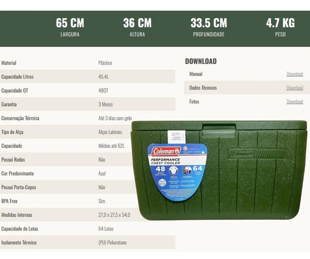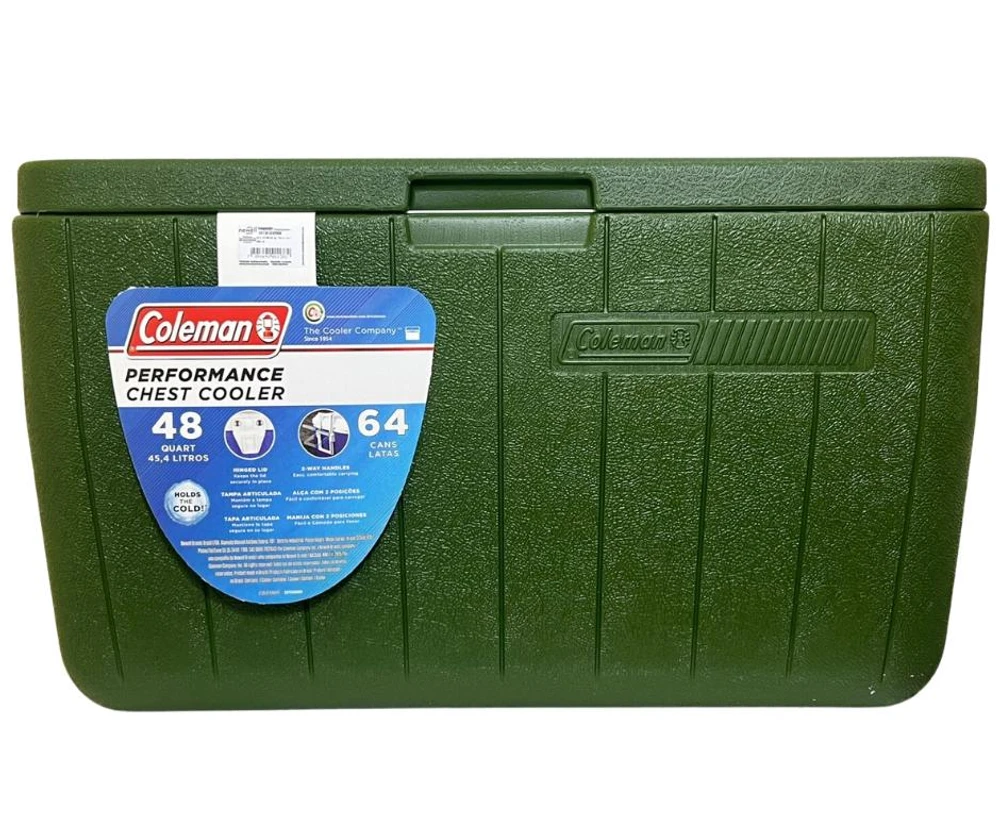 Caixa Térmica Coleman 48qt 45,4 Litros Cor Verde 64 Latas