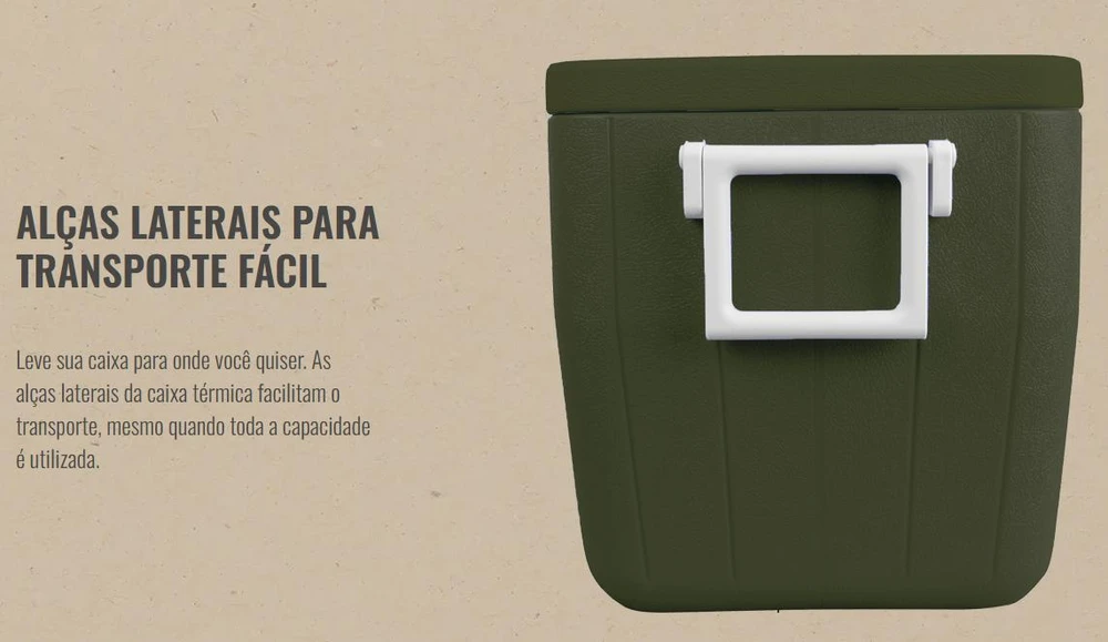 Além disso, suas alças laterais facilitam o transporte mesmo quando cheia, tornando-a uma companheira indispensável para acampamentos, praias e churrascos. Conta também com sistema EZ-Clean, que simplifica a limpeza após o uso e isolamento em PU, assegurando máxima eficiência térmica.