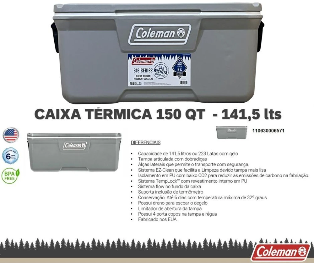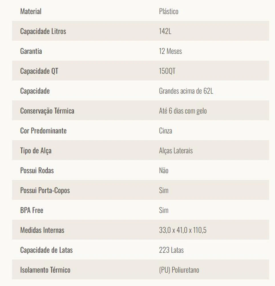 Caixa Térmica 141 litros 150 QT 316 Séries - Invicta