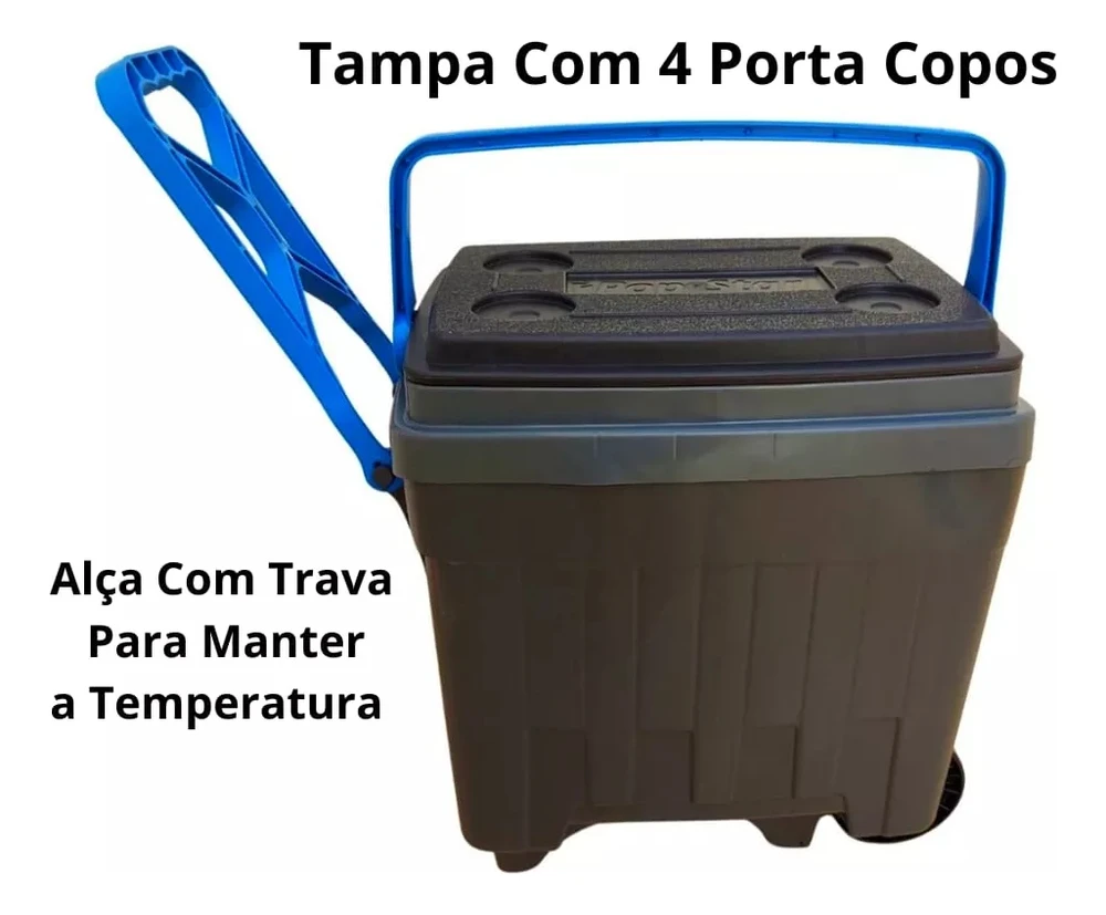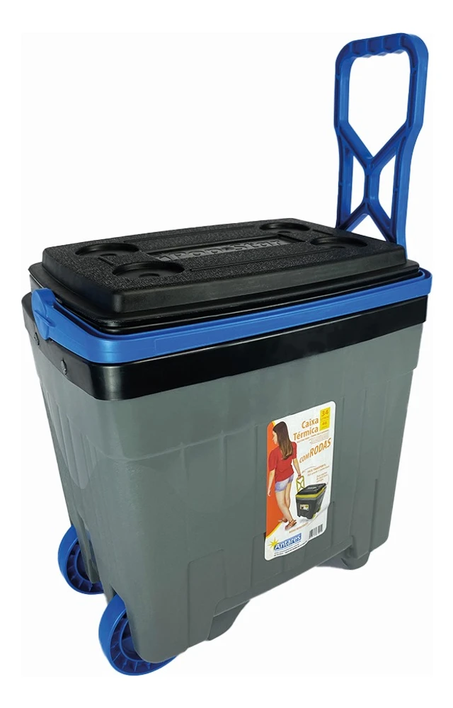 A Caixa Térmica Cooler 34 L da marca Antares é a companheira ideal para suas aventuras ao ar livre, seja na pesca, camping ou na praia. Com capacidade para até 46 latas ou 7 garrafas, você terá espaço suficiente para manter suas bebidas e alimentos frescos durante todo o dia. Seu design prático inclui rodas que facilitam o transporte, além de uma alça resistente que proporciona conforto ao carregar.Com dimensões de 51 cm de largura, 31 cm de comprimento e 46 cm de altura, esta caixa térmica é compacta e fácil de armazenar. Fabricada em poliestireno expandido, polietileno e polipropileno, garante durabilidade e eficiência térmica. O modelo também conta com porta-copos, permitindo que você tenha suas bebidas sempre à mão.Pesando apenas 3 kg, a Caixa Térmica Cooler é leve e fácil de manobrar, tornando-a perfeita para qualquer tipo de atividade ao ar livre. Seu design robusto e funcionalidade a tornam uma escolha excelente para quem busca praticidade e eficiência. Prepare-se para desfrutar de momentos inesquecíveis com a garantia de que suas bebidas estarão sempre na temperatura ideal.Estas são algumas orientações gerais para o uso de caixas térmicas: Proteger do solColocar gelo antes do usoManter a tampa entreaberta para ventilação quando não estiver em usoColocar o gelo sobre as bebidas para melhorar o desempenho térmicoNão utilizar bebidas gasosas, gelo seco ou água fervendo diretamente sobre o produto