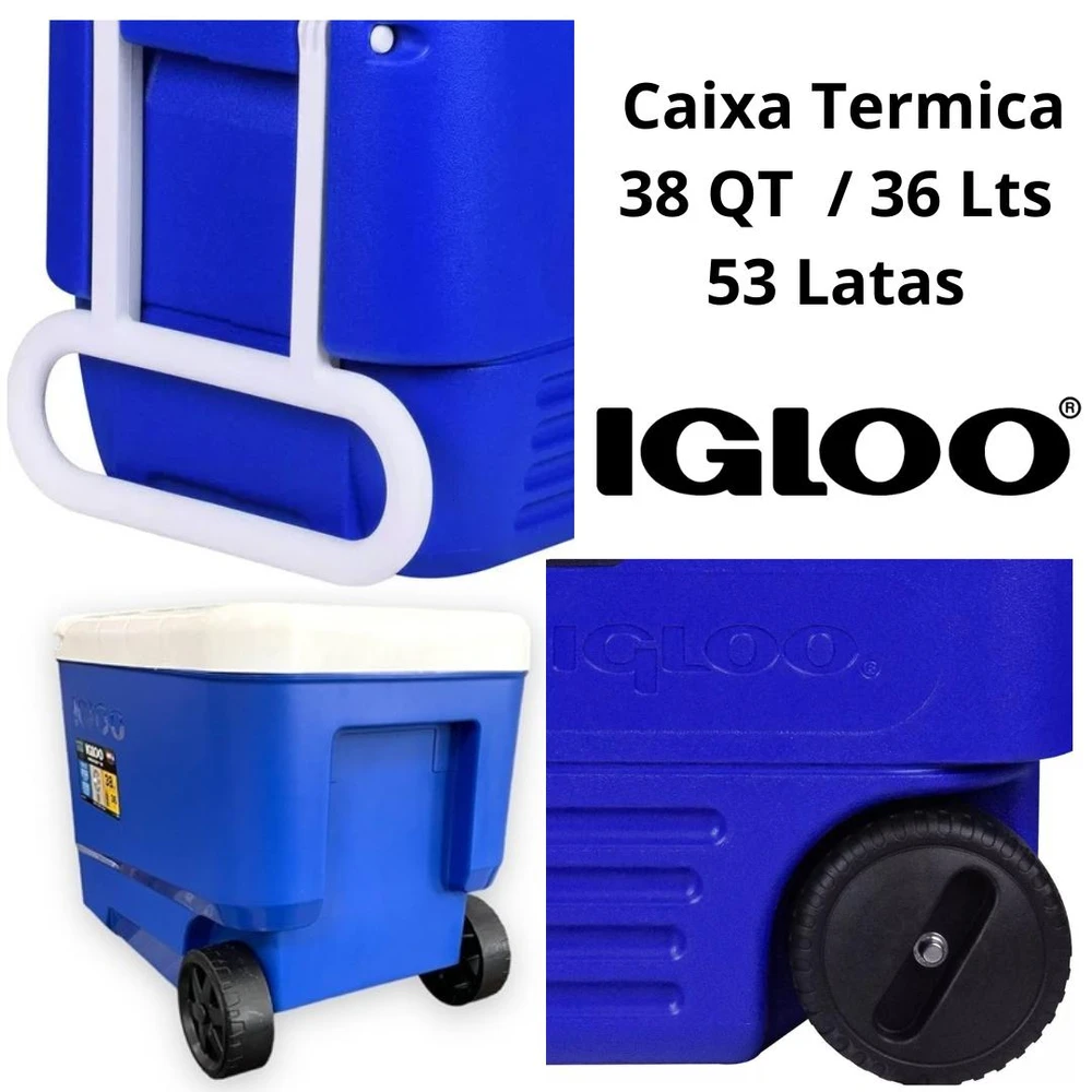 Conteúdo Da Embalagem: 01 Caixa Térmica Cooler 36 Litros Igloo Wheelie Cool 38Qt Azul