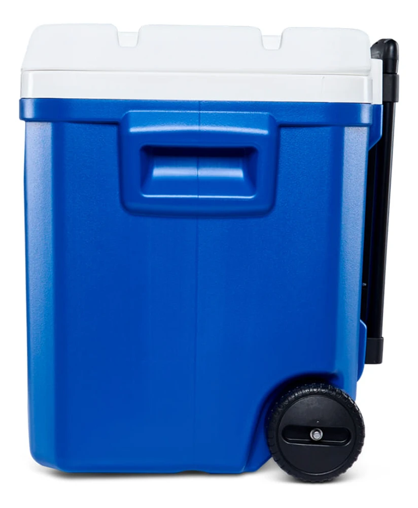 Caixa Térmica Cooler Laguna Roller 60QT da Igloo é uma escolha prática e de alta confiabilidade. Conserva a temperatura por até 4 dias. Possui rodas projetadas para transitar sem dificuldades na areia ou em terrenos irregulares. Inclui alças telescópicas que facilitam o transporte e uma alça central reforçada para suportar o manuseio intenso. O design otimiza a acomodação de alimentos e bebidas, e a tampa conta com suporte para latas e garrafas, além de uma torneira posicionada para auxiliar na drenagem de líquidos.