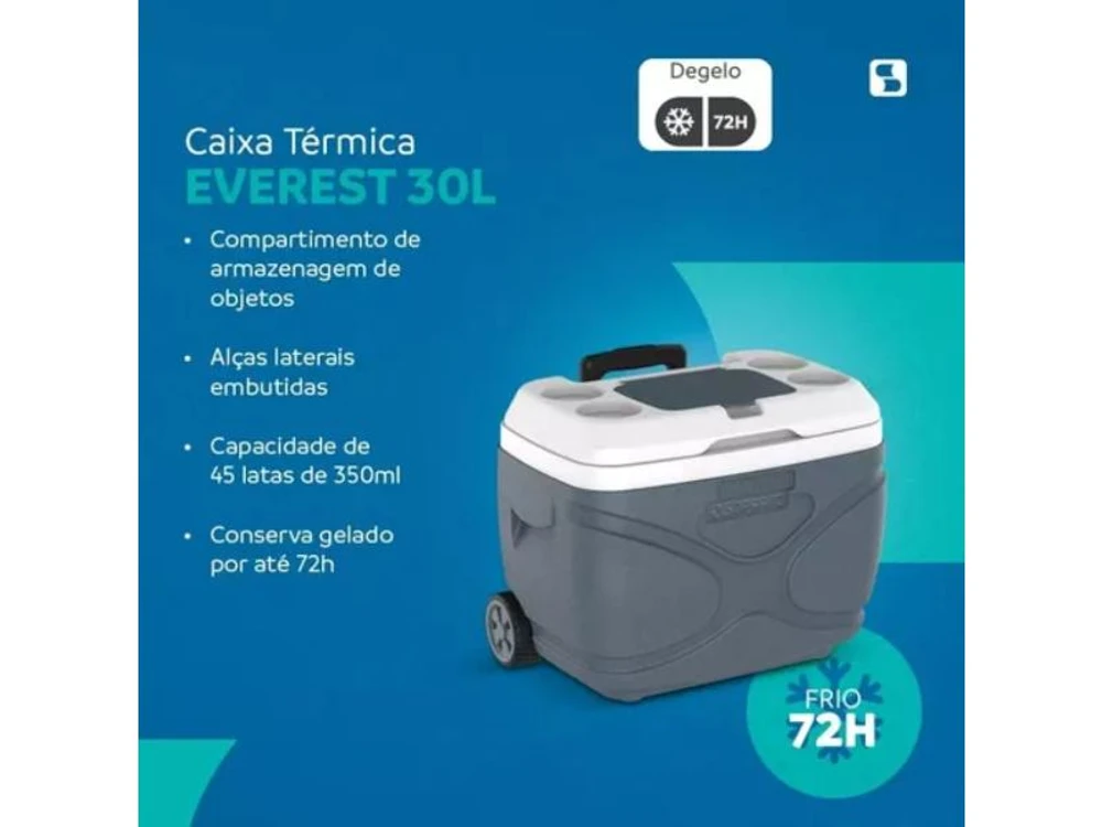 01 Caixa térmica Everest Cinza 30L medidas: 50,5x32x39 CM