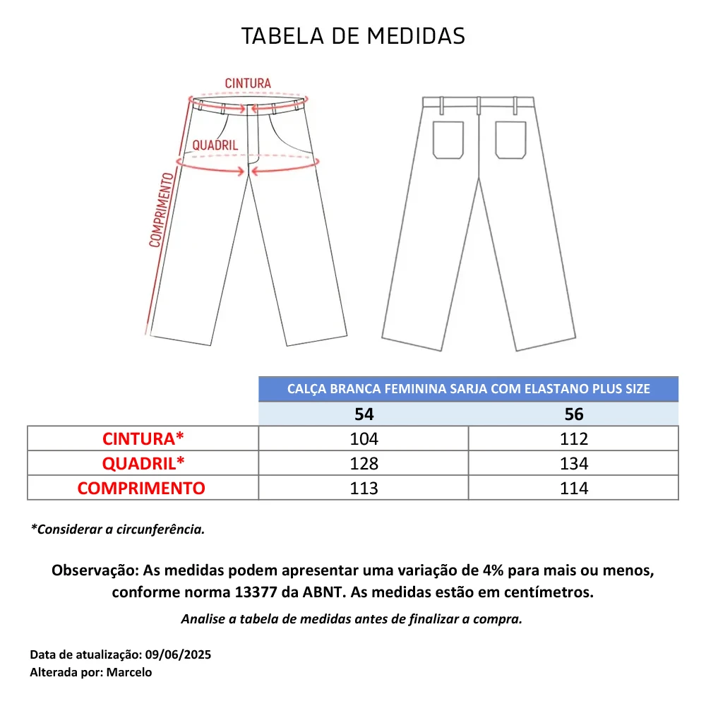 CALÇA BRANCA FEMININA SARJA COM ELASTANO PLUS SIZE