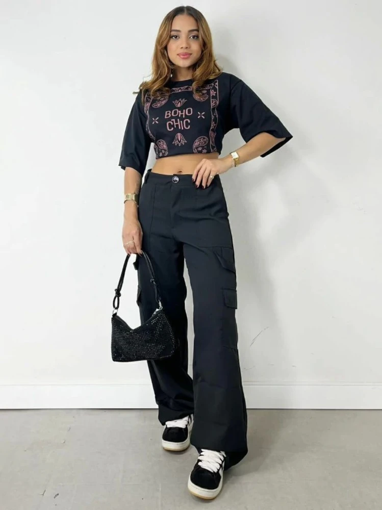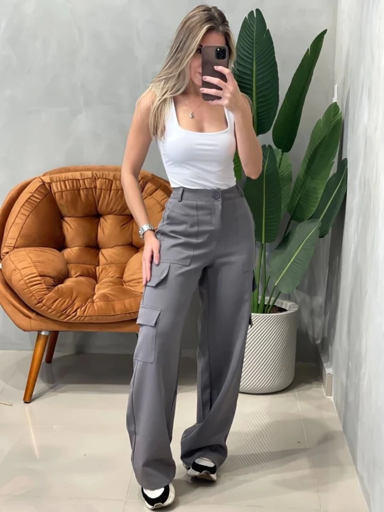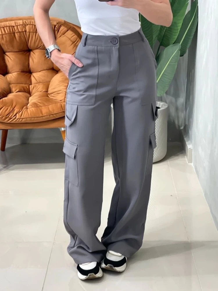 Calça Feminina Alfaiataria Pantalona Carpenter Cargo Doroteia Ref. 973