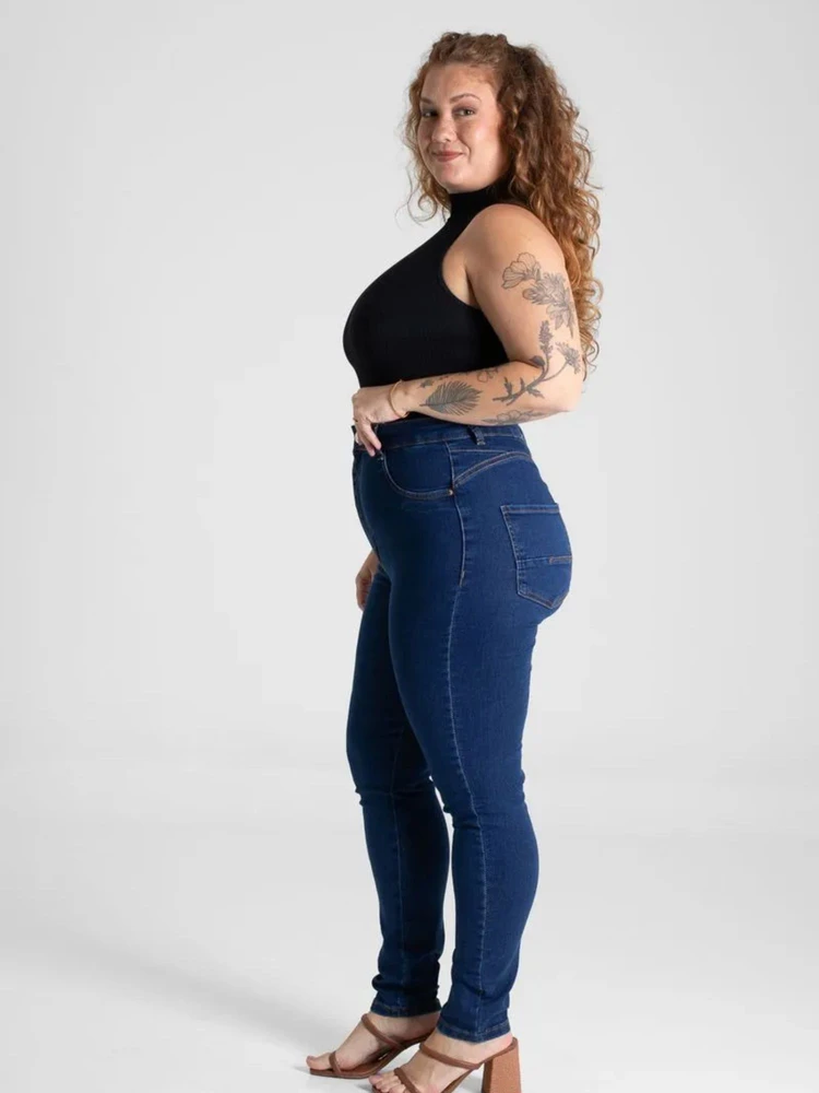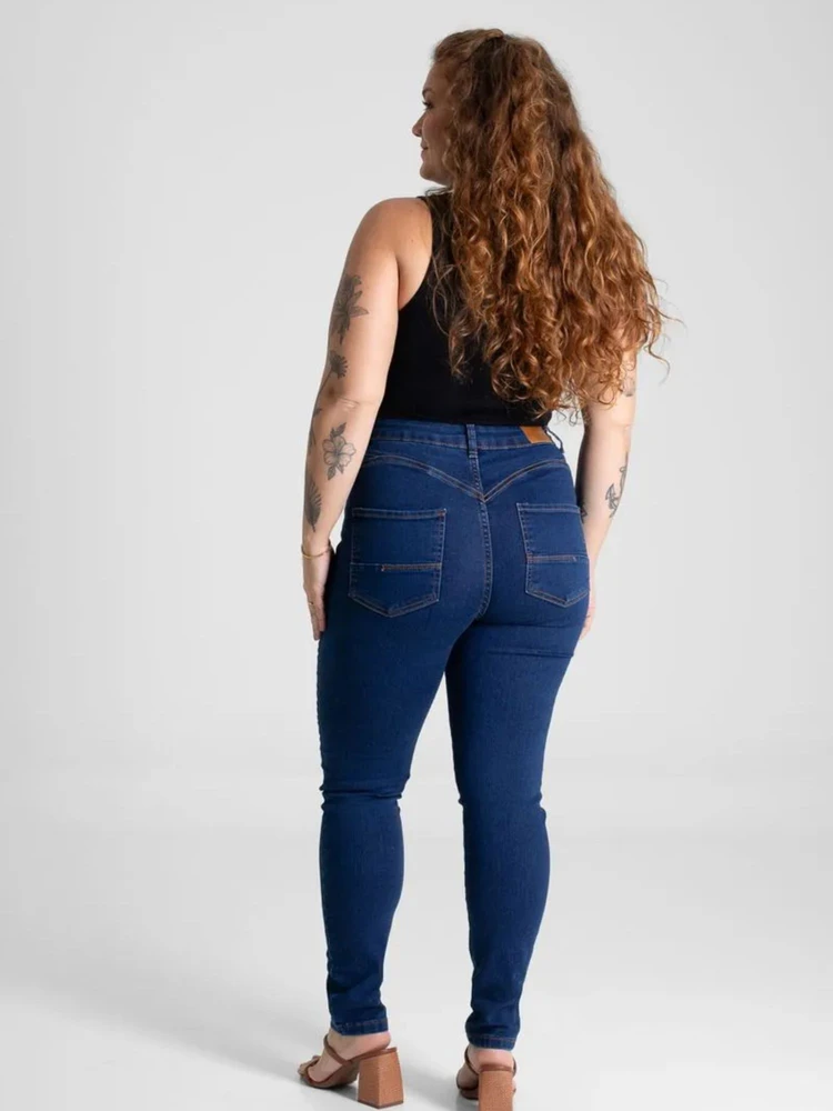 Modelagem skinny que valoriza as curvas, confeccionada em jeans de alta qualidade com cós alto, proporcionando conforto e sustentação ao vestir.