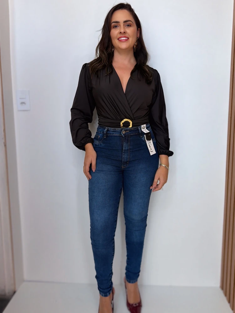 Calça jeans skinny perfeita para valorizar o corpo com conforto e estilo. Com modelagem ajustada e cintura alta, ela modela a silhueta e traz um caimento impecável, ideal para looks do dia a dia ou produções mais arrumadas.