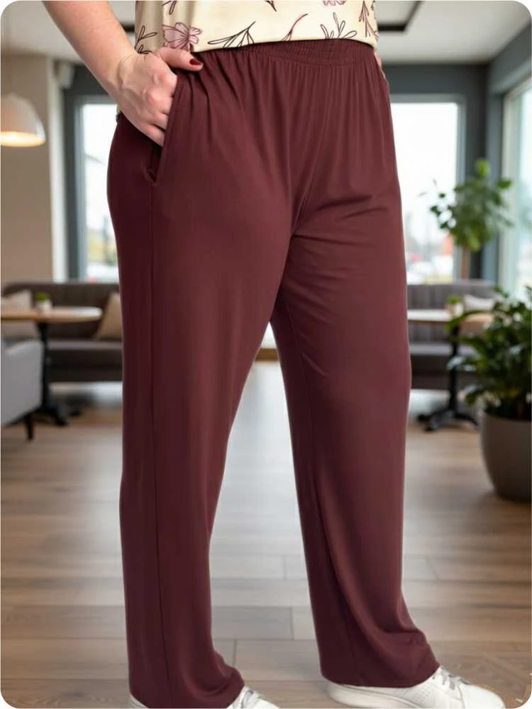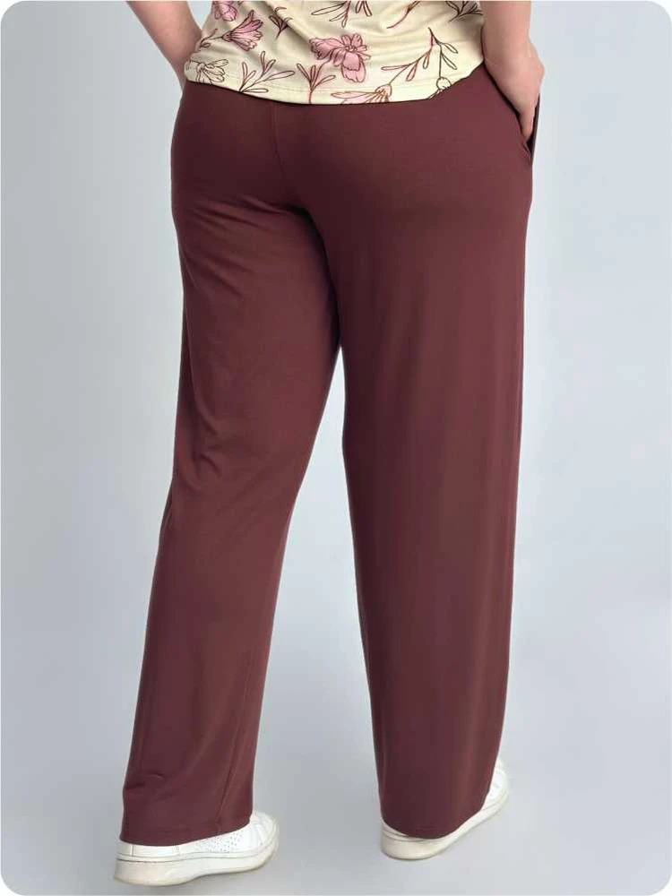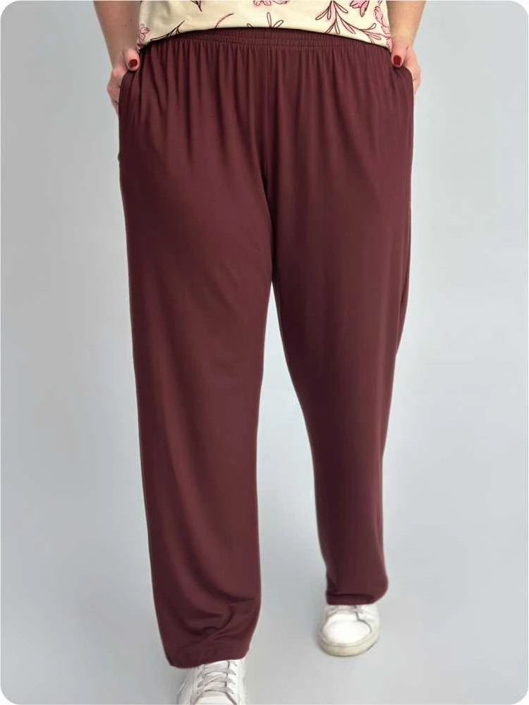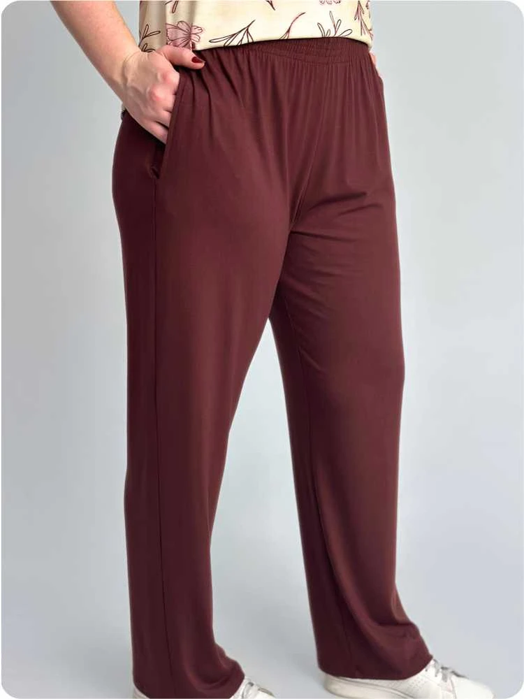 Calça Marrom Soltinha Feminina Malha Lisa Com Bolso
