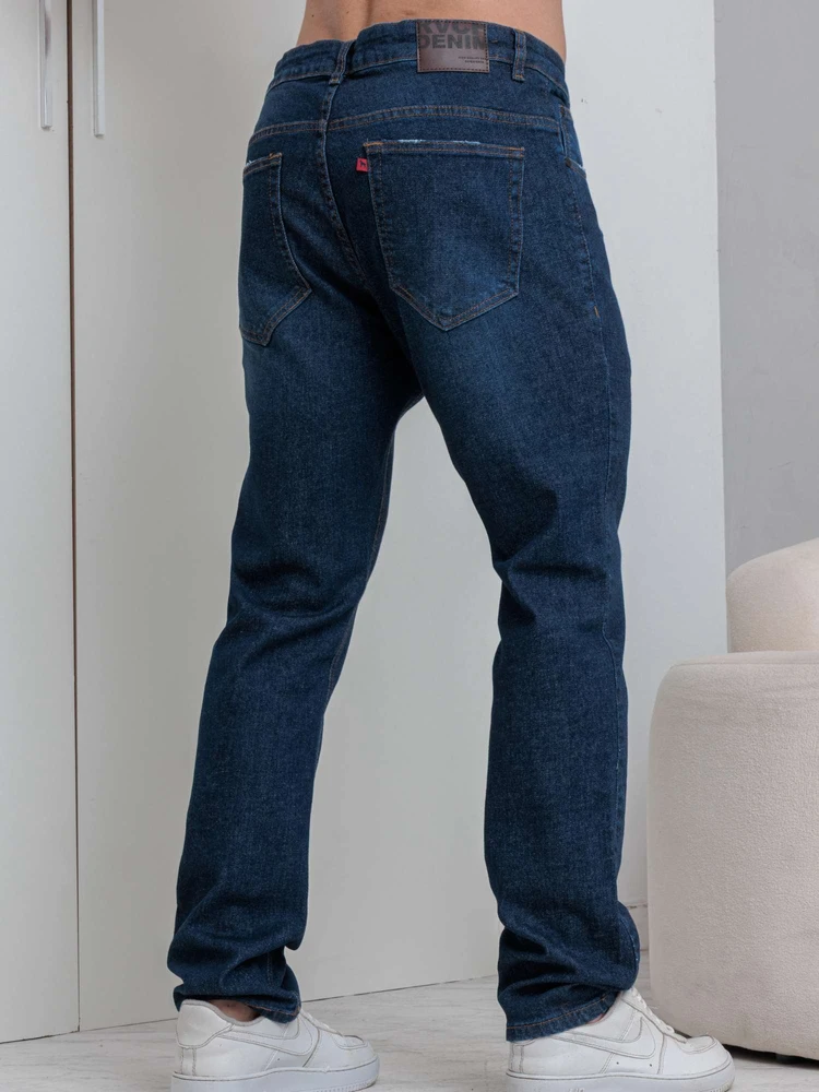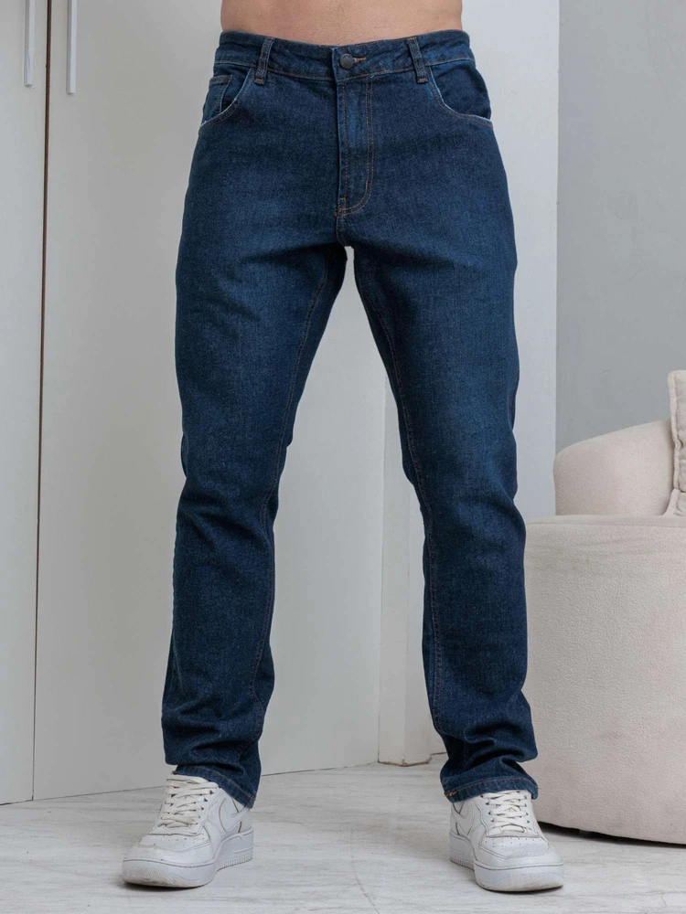 A lavagem escura com costuras aparentes dá um visual clássico e versátil ? vai do casual ao alinhado com facilidade.