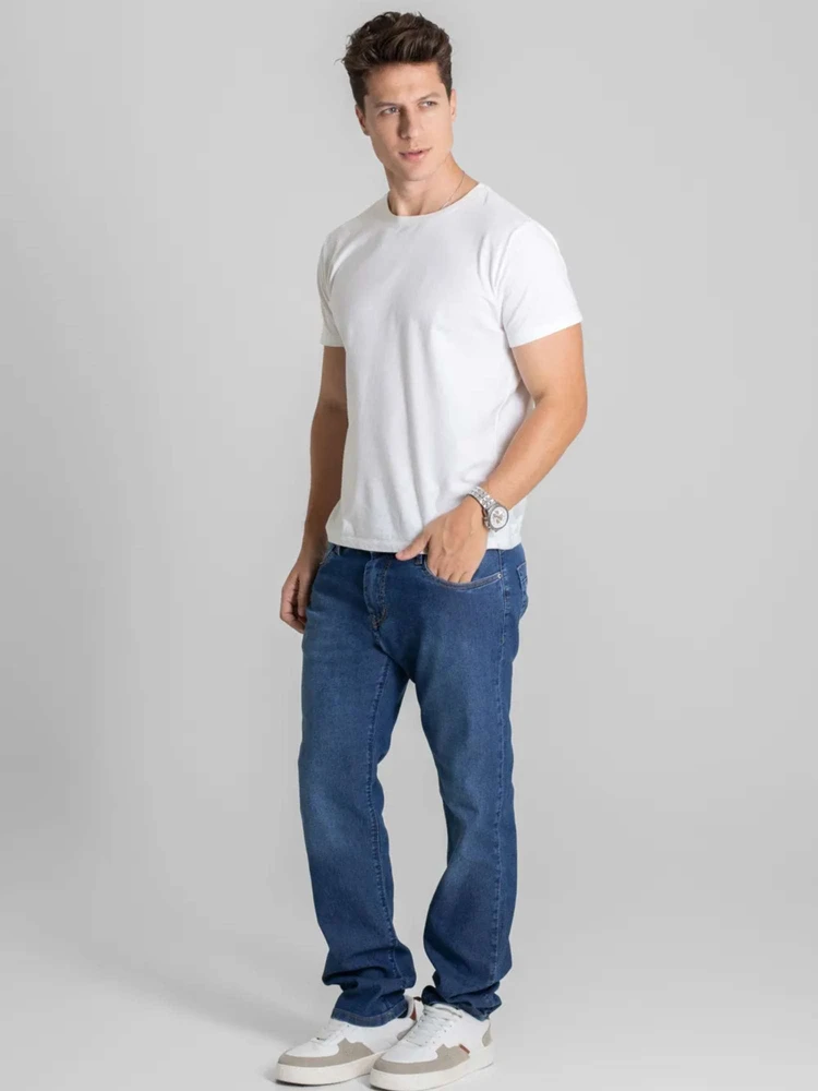 A Calça Jeans Masculina Reta Tradicional é uma peça atemporal, perfeita para quem valoriza conforto aliado ao estilo clássico.