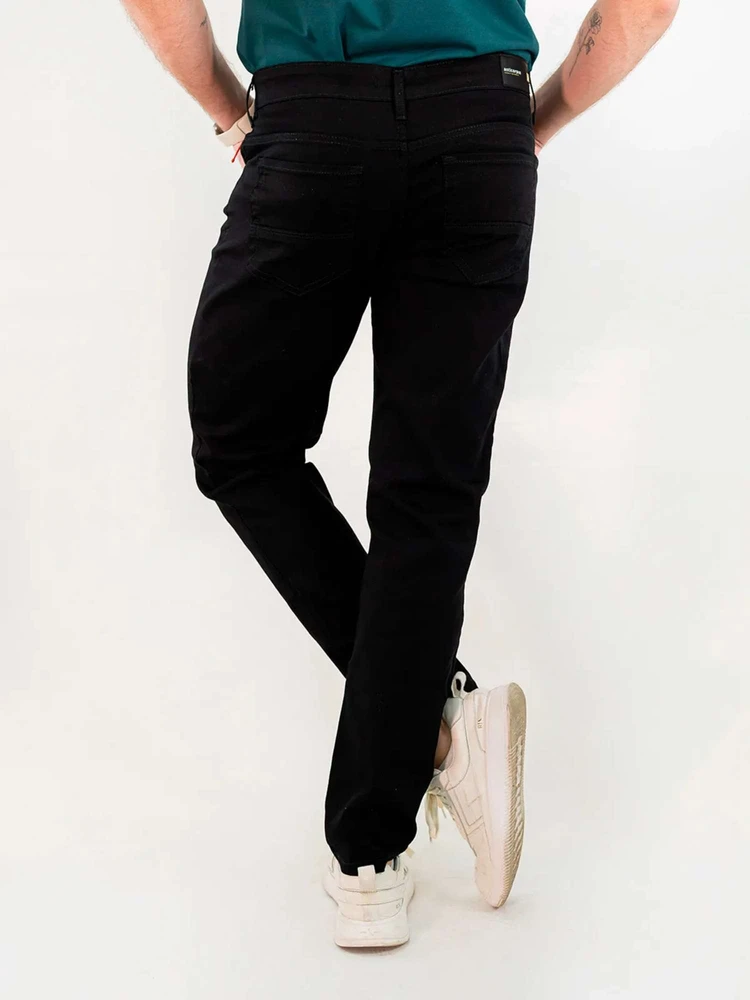 Calça masculina confeccionada em sarja de toque macio, com modelagem slim tradicional, que ajusta levemente nas pernas sem perder o conforto.