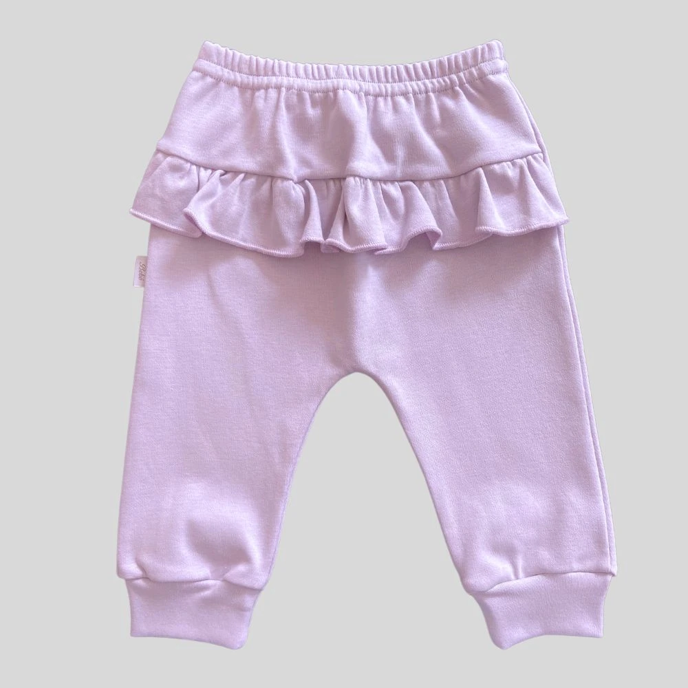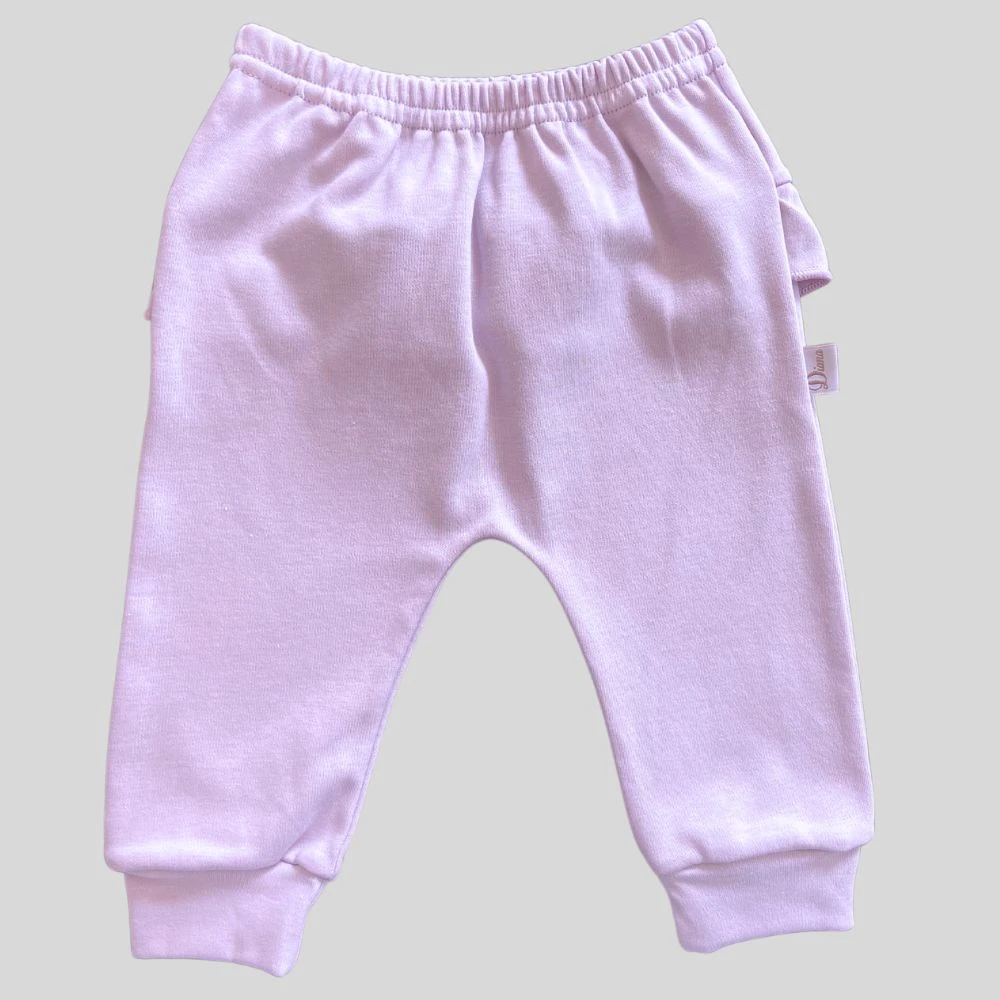 Calça mijão para bebê em suedine algodão egípcio com babados Lilás