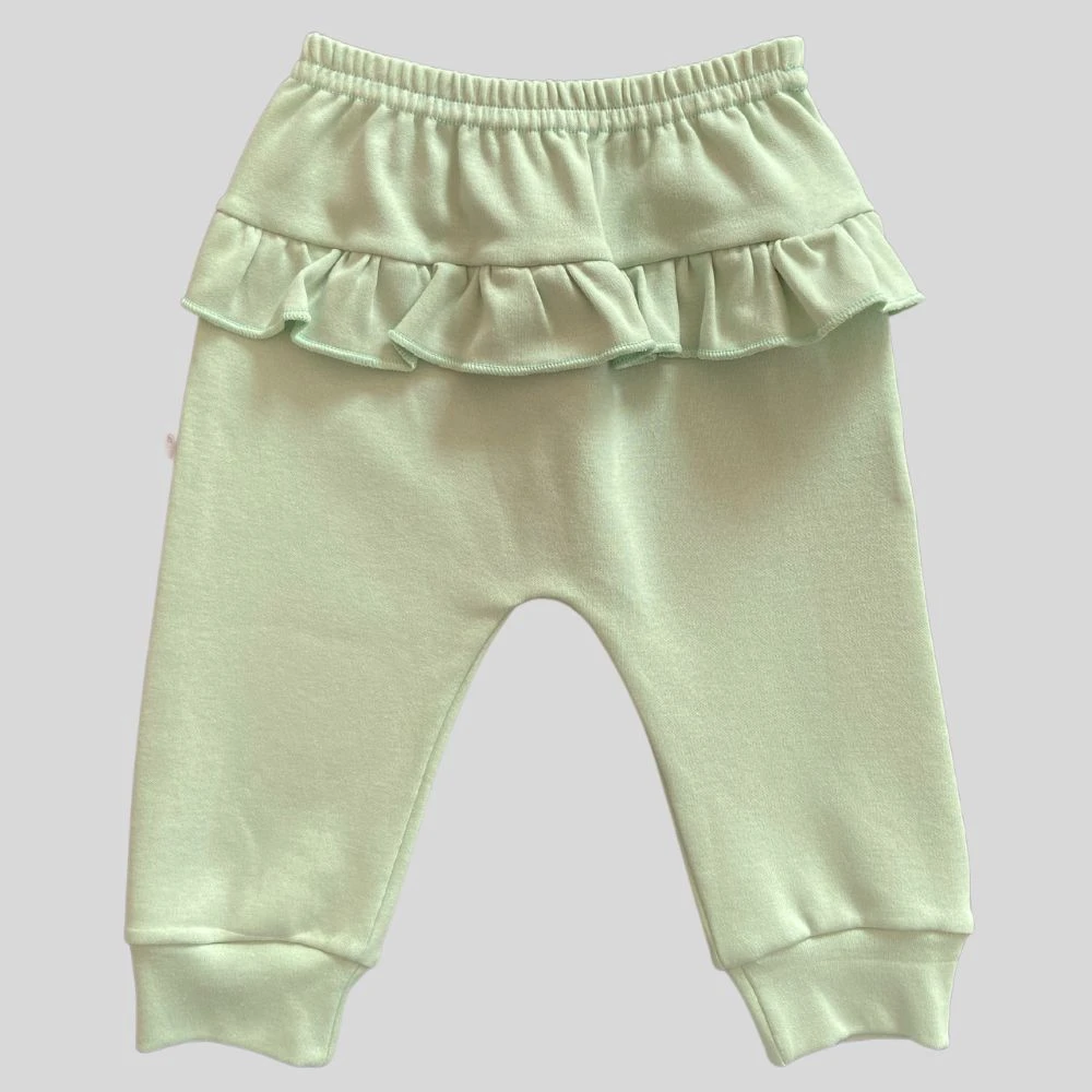 Calça mijão para bebê em suedine algodão egípcio com babados Verde