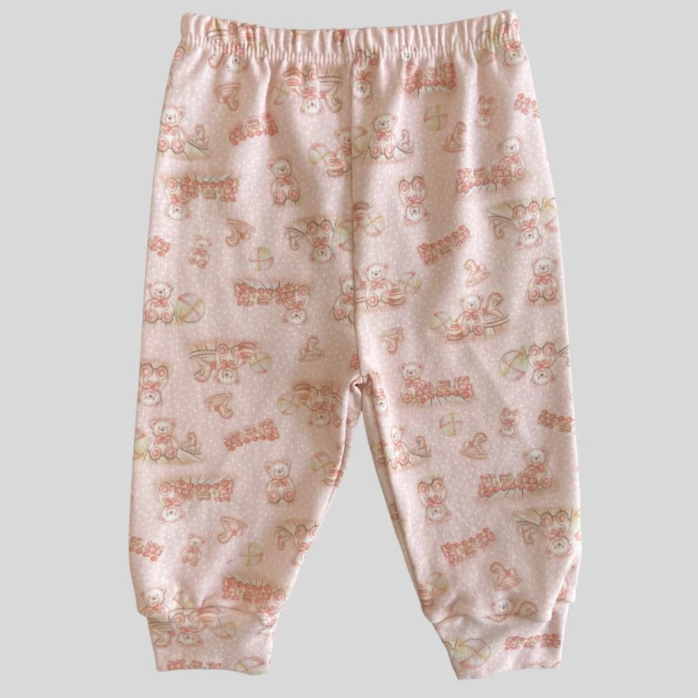Calça mijão para bebê em suedine algodão egípcio com estampa brinquedos Rosa