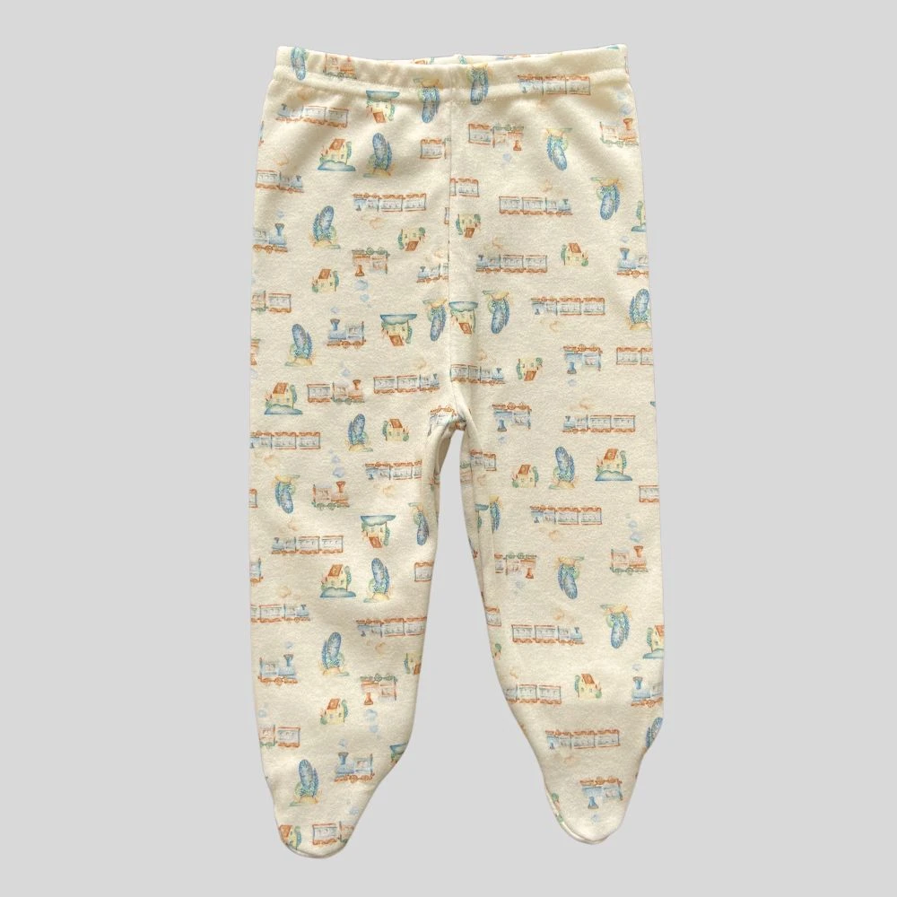 Calça mijão para bebê em suedine algodão egípcio com pé estampa trenzinho Amarelo Claro