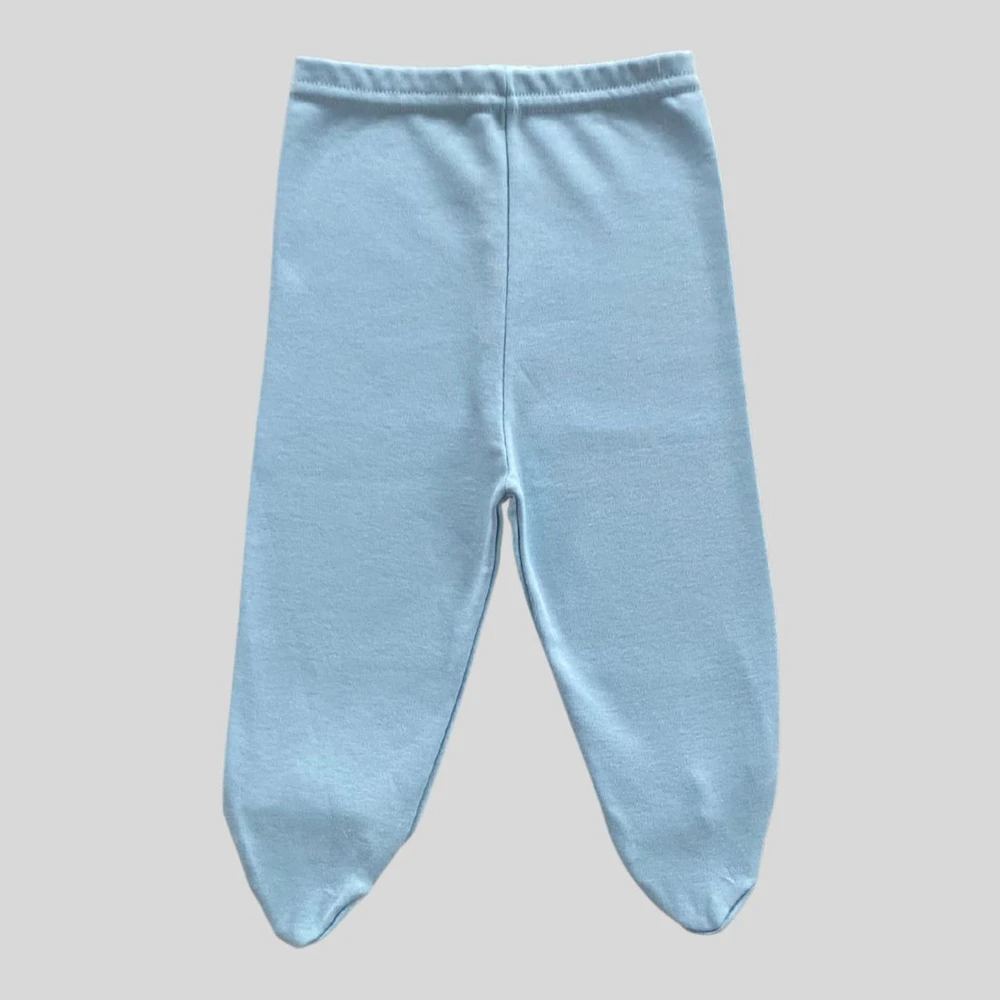 Calça mijão para bebê em suedine algodão egípcio com pé na cor Azul