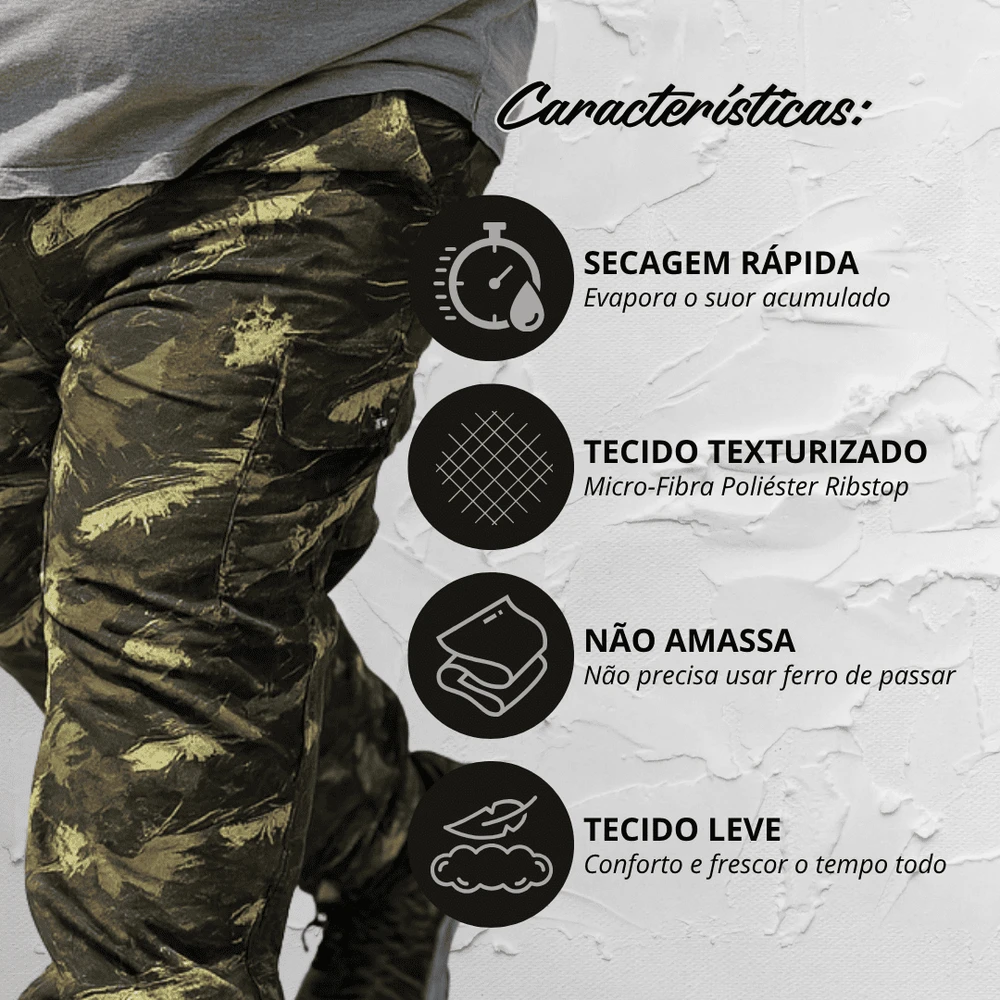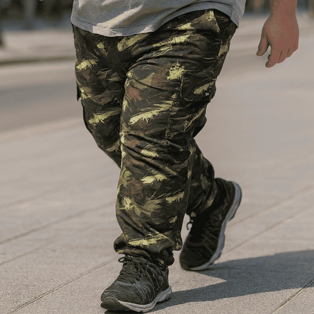 - A calça cargo camuflada plus size combina estilo e praticidade. O cós híbrido garante um ajuste confortável, enquanto a braguilha funcional facilita o uso. Com bolsos frontais, traseiros e cargo, ela oferece espaço para o essencial sem excessos. Sua modelagem foi pensada para um caimento alinhado e estiloso, ideal para quem curte um visual moderno e descomplicado.
