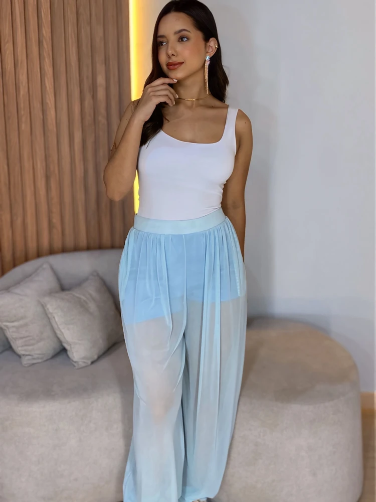 Com um design versátil, essa calça pode ser usada em diversas ocasiões, desde um passeio no parque até um jantar mais formal. Seu corte reto e elegante valoriza a silhueta feminina, enquanto o tule traz um toque de sensualidade na medida certa.