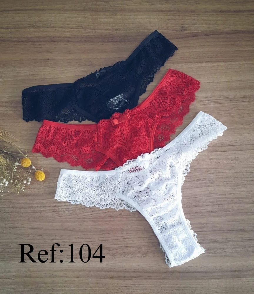 Calcinha avulsa rendada, nas cores branca, preta e vermelha, P ao GG. Tem a elegância, combinando com o conforto e qualidade.