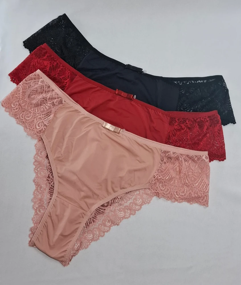 Calcinha Plus size microfibra e renda, atrás inteira em renda, pala mais larga na lateral em renda não marcando a roupa, forro em algodão 100%. Cod. TG56