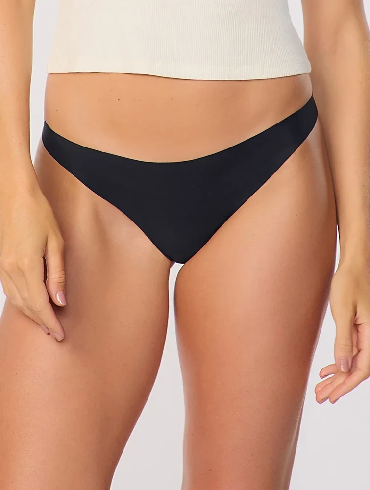 Detalhes: Corte a fio, laterais estreitas, bumbum fio