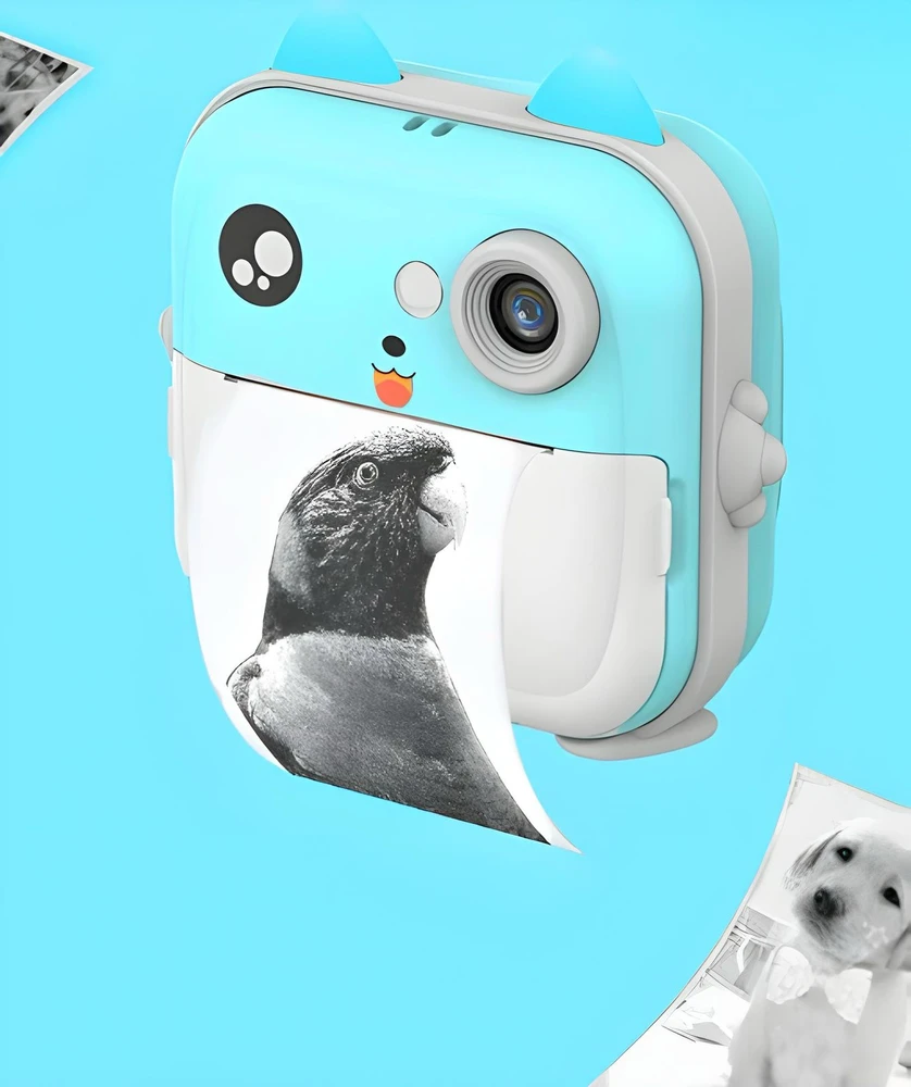 Esta incrível câmera de impressão instantânea infantil é capaz de tirar fotos, gravar vídeos, conectar ao celular e imprimir imagens instataneamente utilizando tecnologia de impressão térmica. O produto apresenta uma tela de alta definição IPS de 2,4 polegadas, modo selfie, resolução de 24MP, bateria de longa duração, disparo contínuo de mais de 2000 fotos e até 6 horas de gravação de vídeo, os quais são permitidos apenas quando há um cartão SD inserido. Além disso, também possui jogos variados e diferentes efeitos e molduras para fotos.