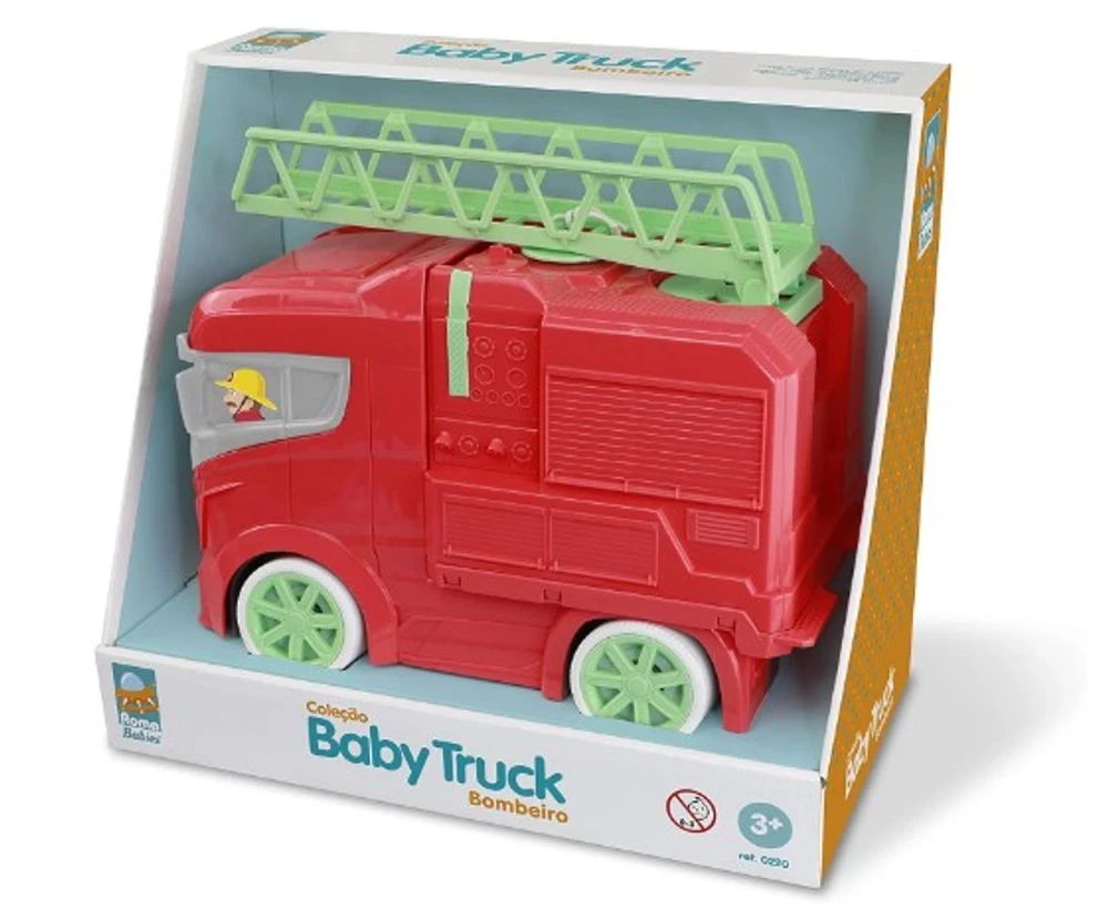 Baby Truck Caminhão Bombeiro com design moderno, cores brilhantes, desenvolvido em plástico resistente e rodas livres.