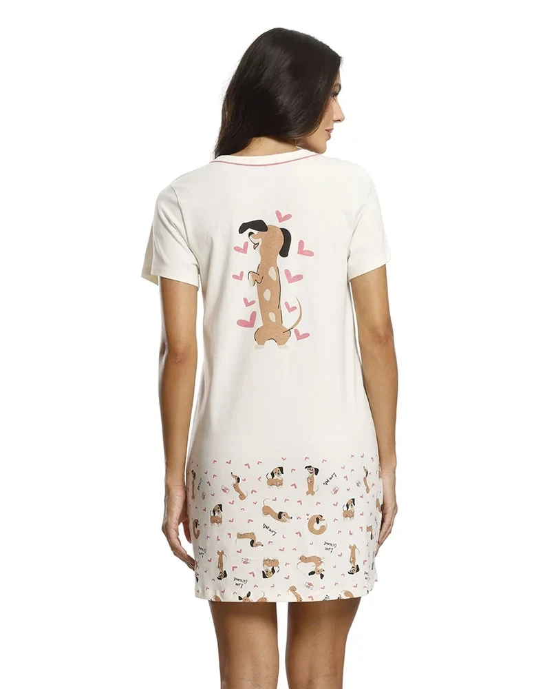 O camisão manga curta jovem Dog Paulienne é leve e confortável, perfeito para momentos de descanso com estilo descontraído. Confeccionado em malha pele de pêssego algodão, apresenta estampa localizada na frente em silk screen e estampa corrida nas costas, unindo charme e jovialidade. A gola arredondada e a modelagem Paulienne garantem caimento suave e conforto prolongado, ideal para uso diário em casa.