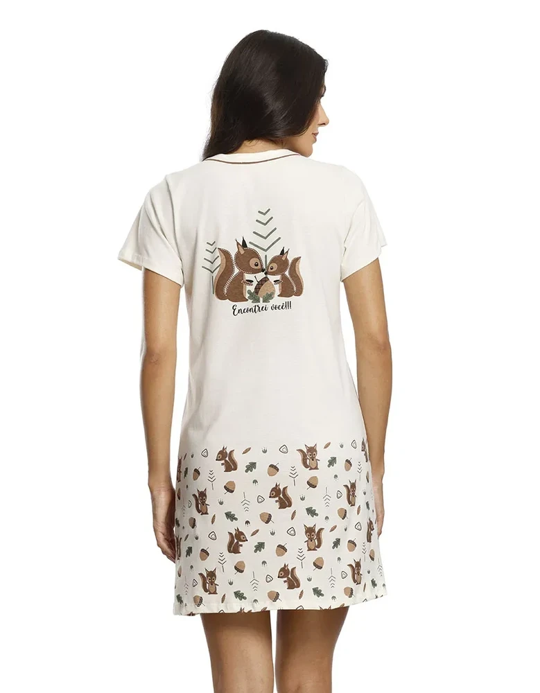 O camisão manga curta jovem Esquilo Paulienne combina conforto e estilo descontraído para os momentos de descanso. Confeccionado em malha pele de pêssego algodão, apresenta estampa localizada em silk screen na frente e estampa corrida nas costas, conferindo charme e jovialidade. A gola arredondada e a modelagem Paulienne proporcionam caimento suave e conforto prolongado, ideal para uso diário em casa.