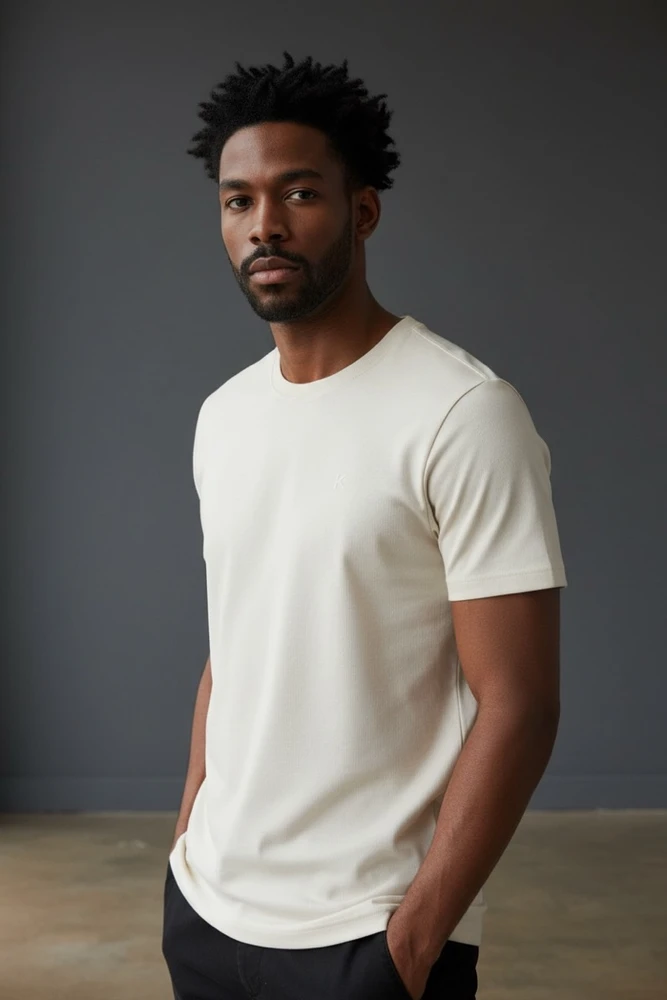 CAMISETA MASCULINA feita com tecido 100% algodão, proporcionando conforto e qualidade superior. A gola redonda é confeccionada em ribana 2x1, garantindo durabilidade e acabamento impecável. Com modelagem slim, a peça valoriza o corpo, oferecendo um caimento perfeito para o dia a dia. Ideal para quem busca estilo e conforto em uma só camiseta.