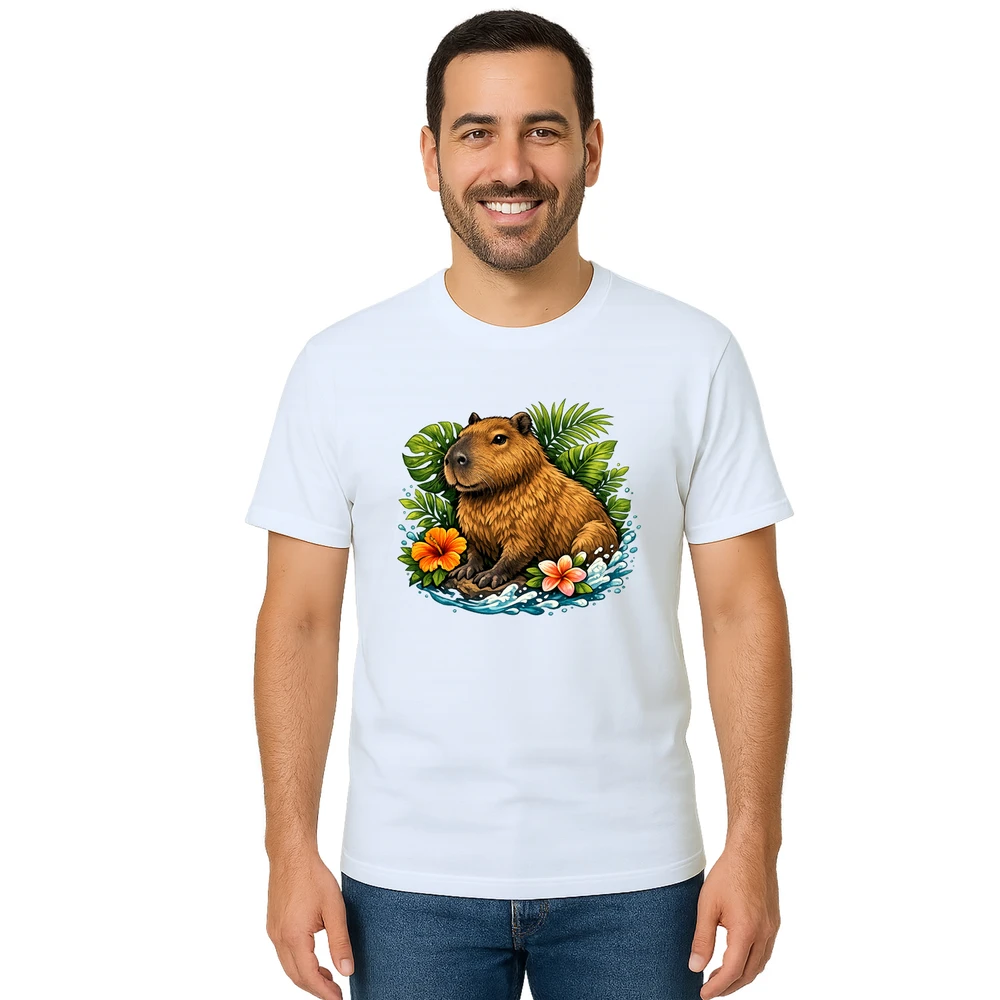 Descubra a Camiseta Capivara Floresta Estampa Personalizada, perfeita para quem busca estilo único e conexão com a natureza. Com estampa vibrante de capivara rodeada por folhagens e flores, esta camiseta une conforto e personalidade para todas as idades. Ideal para uso casual, passeios ao ar livre ou momentos de lazer, ela destaca seu amor pela vida selvagem e pela floresta.