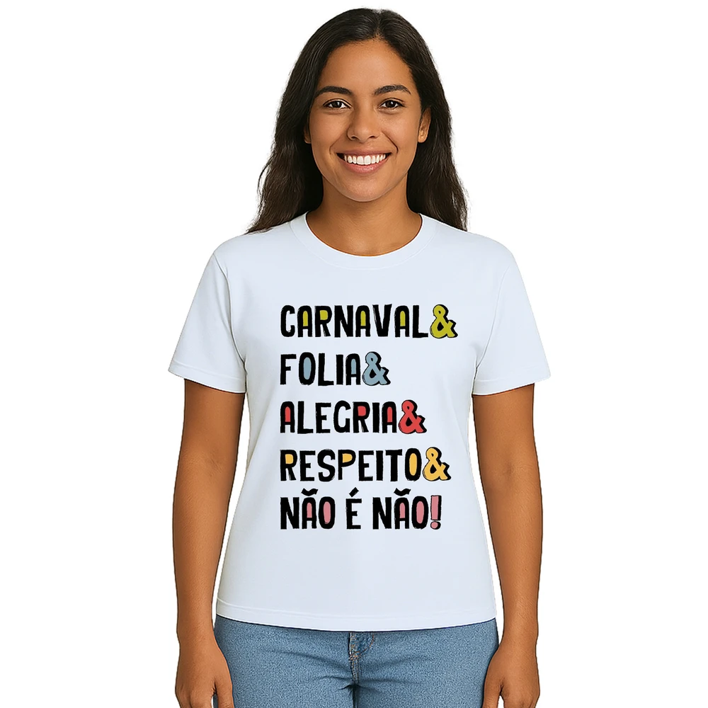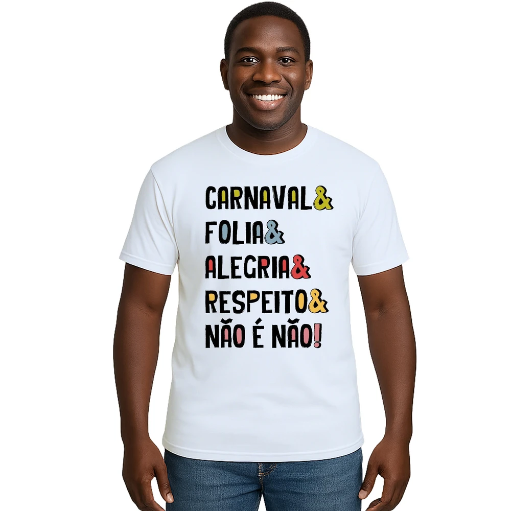 Vista a Camiseta Carnaval Folia Alegria Respeito Personalizada, une estilo e propósito para quem valoriza a diversão consciente. Feita em tecido leve e confortável, é ideal para dias de festa e celebração, garantindo liberdade de movimento e frescor o tempo todo. Sua estampa exclusiva destaca palavras que traduzem o espírito do Carnaval: alegria, folia e respeito, com uma mensagem poderosa que reforça o valor do consentimento.