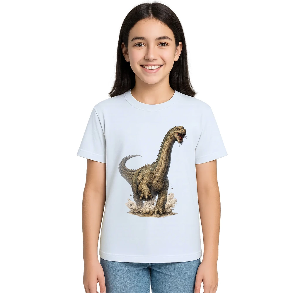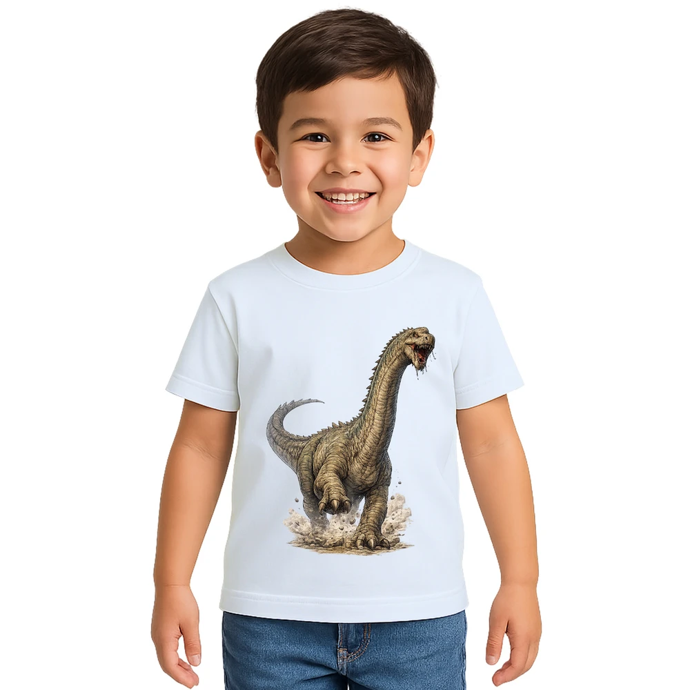 Descubra a Camiseta Dinossauro Braquiossauro com Estampa Personalizada, perfeita para apaixonados por paleontologia e estilo único. Produzida em algodão com poliéster, oferece conforto e durabilidade para o uso diário. Sua estampa detalhada do braquiossauro, um dos dinossauros mais icônicos, traz um visual imponente e cheio de personalidade, ideal para crianças e jovens que querem expressar sua paixão pela pré-história.
