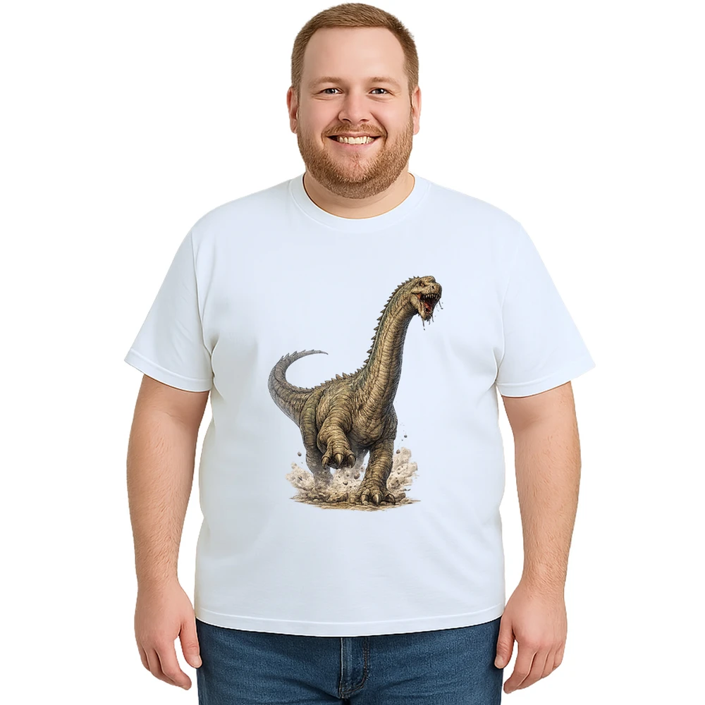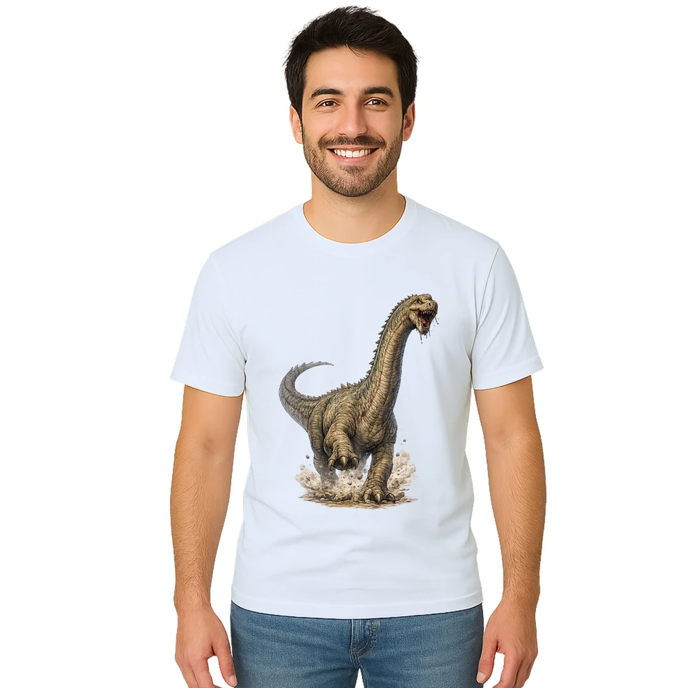 Aproveite a chance de usar uma camiseta que une autenticidade, estilo e conforto, destacando seu amor pelos dinossauros com muita atitude. Garanta já a sua e faça parte do time dos fãs de aventuras jurássicas!