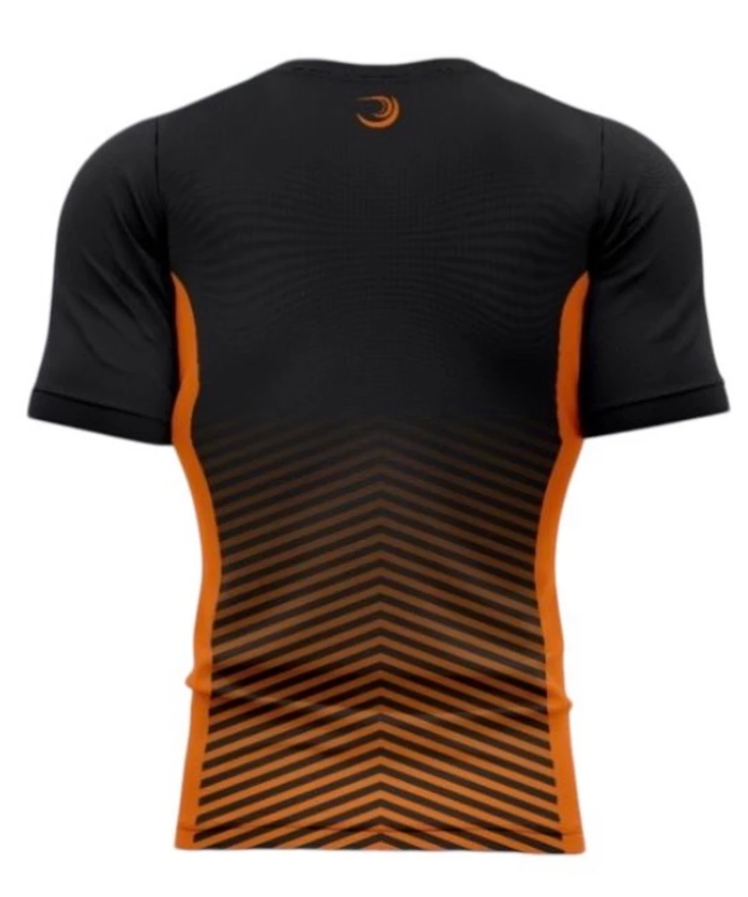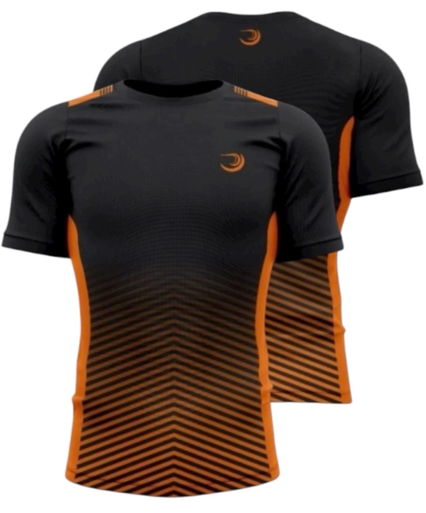 Camiseta Dryfit Tech Summer Pro Preta com detalhes em laranja, ideal para corrida, treino, academia e atividades fitness. Desenvolvida com tecnologia dryfit, proporciona alta respirabilidade e rápida evaporação do suor, mantendo seu corpo seco e confortável mesmo durante os exercícios mais intensos. O tecido antiodor combate o mau cheiro, garantindo frescor e confiança por mais tempo. Seu design anatômico e ajuste perfeito valorizam o corpo, enquanto as faixas laranjas laterais e estampa exclusiva trazem estilo e modernidade.