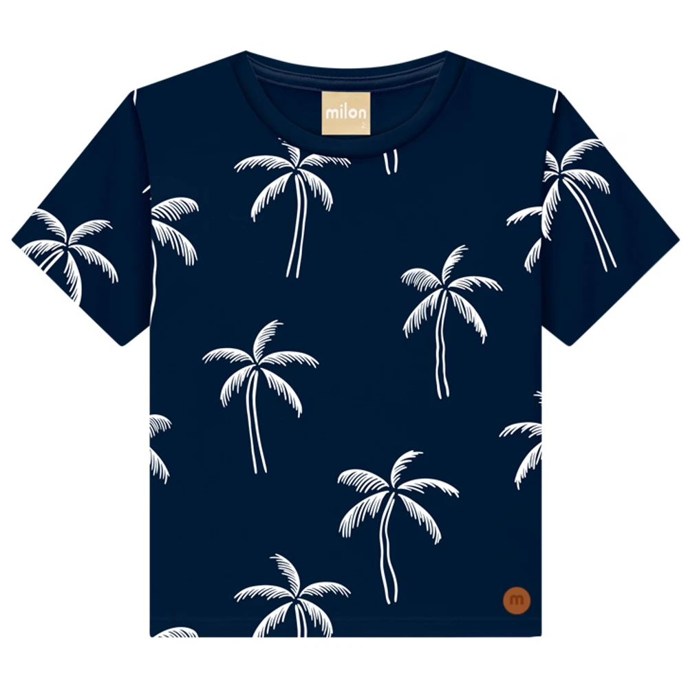 Descubra a Camiseta Infantil Manga Curta em Meia Malha Marinho Estampada Milon, a escolha ideal para o guarda-roupa dos pequenos que buscam conforto e estilo. Produzida em meia malha de alta qualidade, oferece toque macio e excelente respirabilidade, perfeita para o dia a dia ativo das crianças. A estampa exclusiva de palmeiras brancas em fundo marinho traz um visual moderno e divertido, que combina com diversas ocasiões – desde passeios ao ar livre até encontros com amigos.