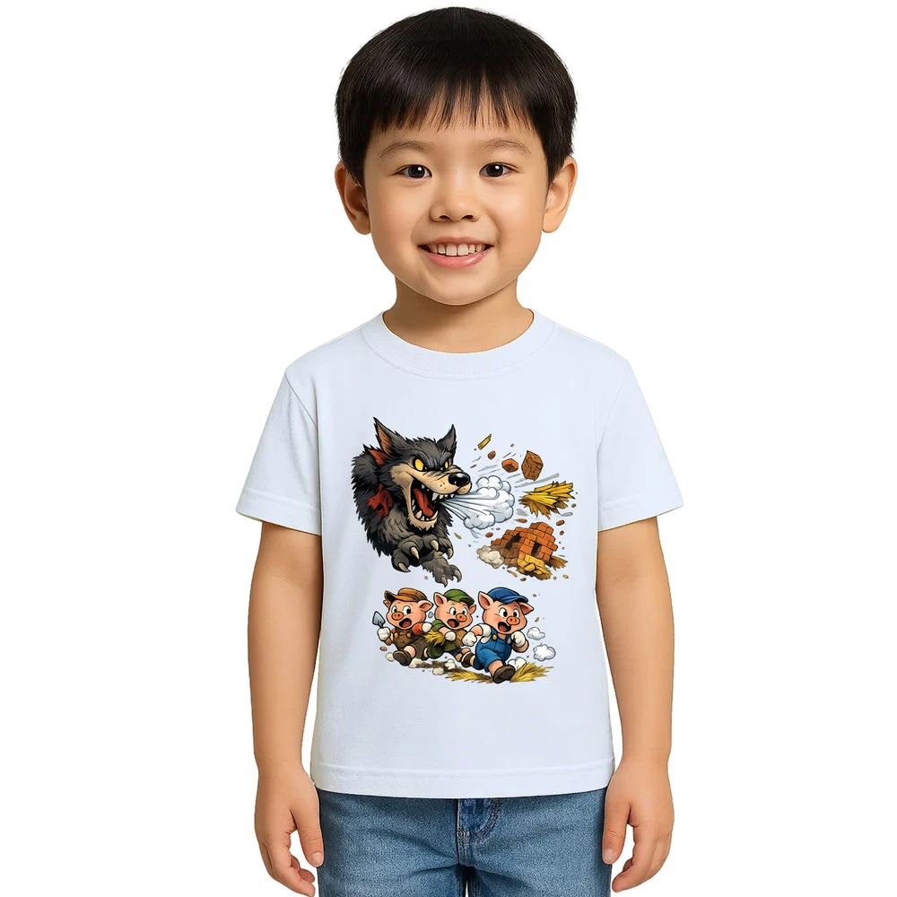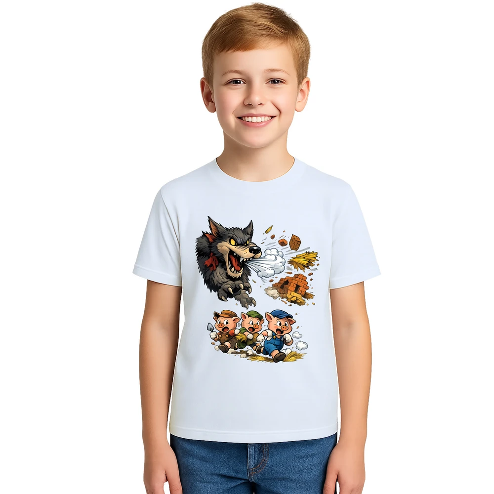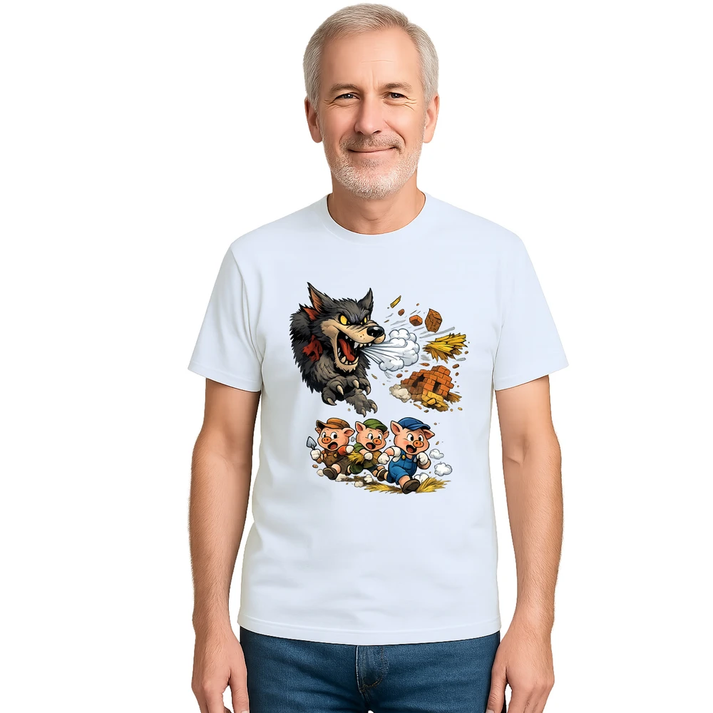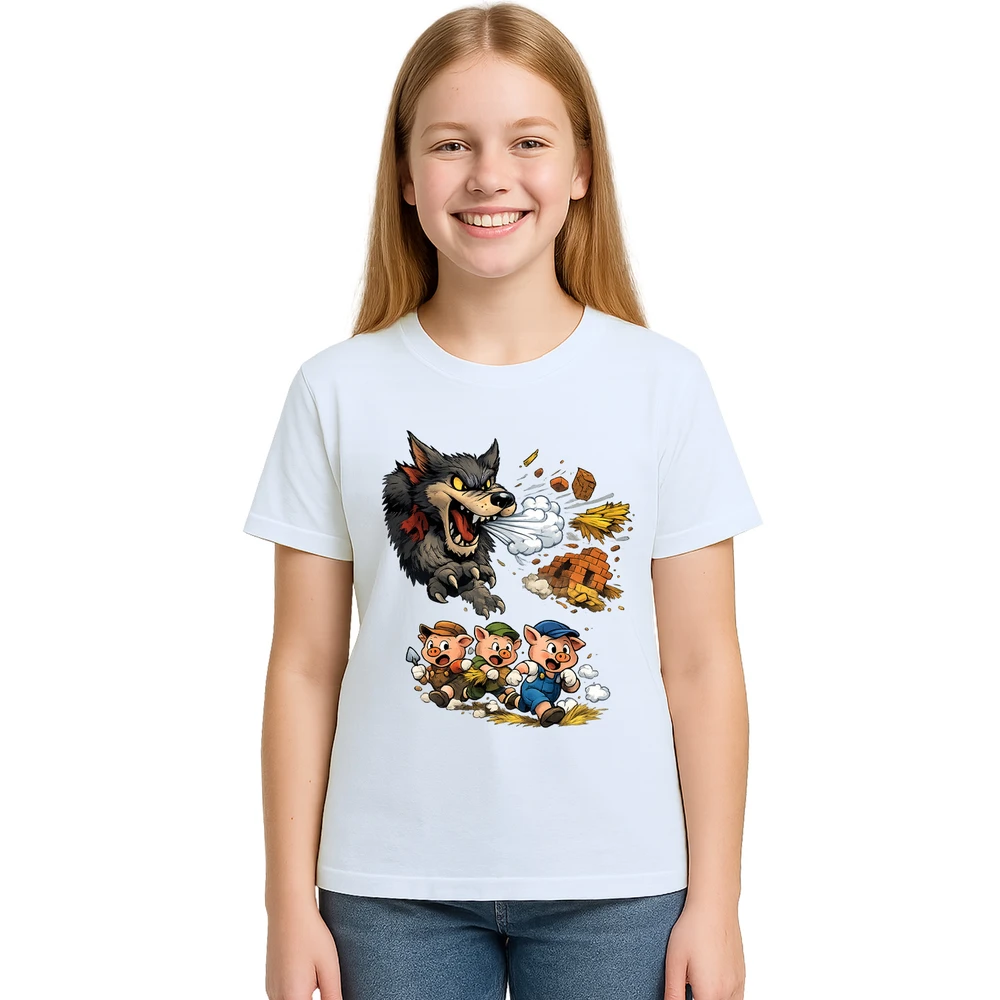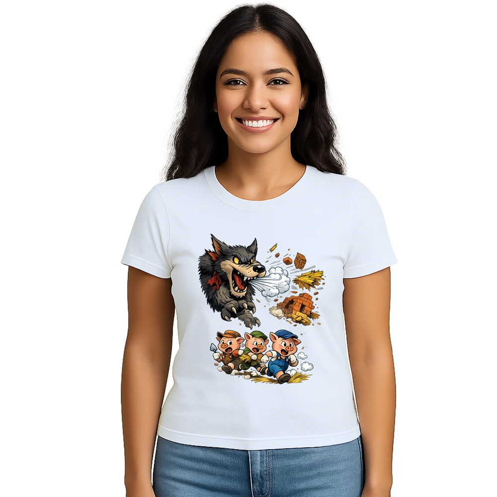 Conheça a Camiseta Lobo Mau e Três Porquinhos Correndo Personalizada, perfeita para você que adora histórias clássicas com um toque moderno. Feita em tecido de alta qualidade, garante conforto e durabilidade para o dia a dia. A estampa vibrante e detalhada retrata o icônico lobo soprando as casas enquanto os três porquinhos correm, despertando a imaginação e o senso de aventura.