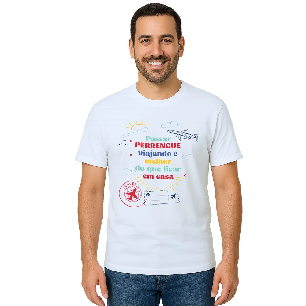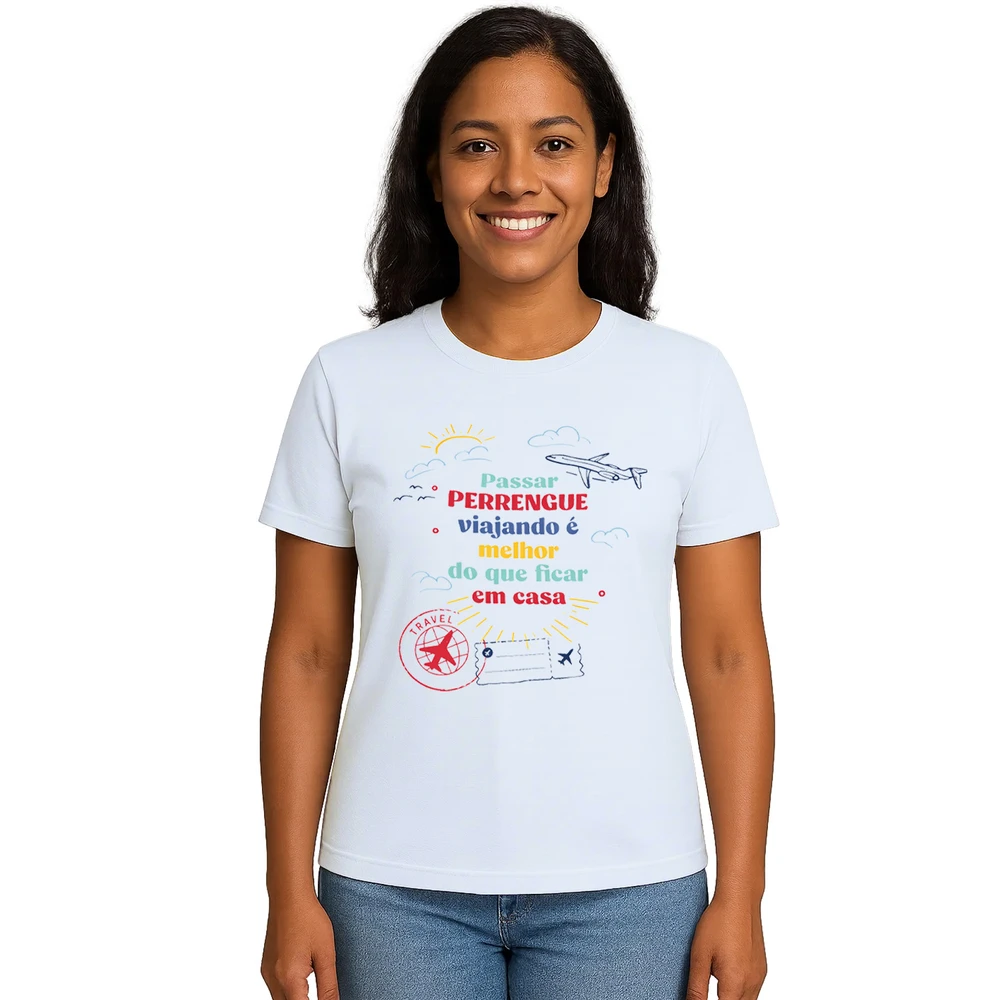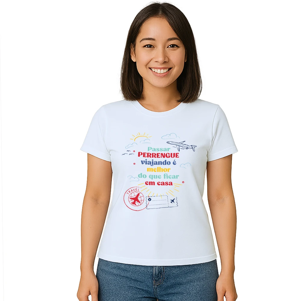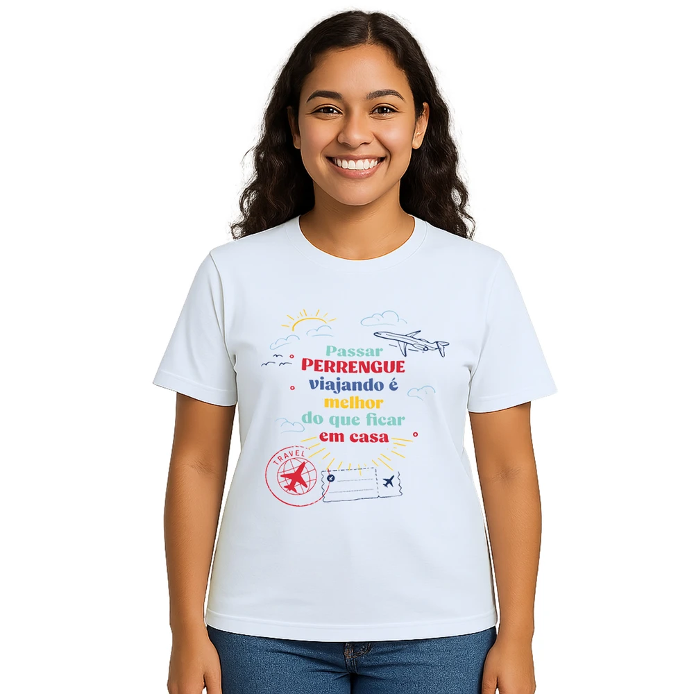 Descubra a camiseta ideal para quem ama viajar e encara qualquer desafio com bom humor. A Camiseta Passar Perrengue Viajando Estampa Personalizada traz uma estampa exclusiva que celebra a aventura e a coragem de explorar o mundo, mesmo com imprevistos. Confeccionada em tecido leve e confortável, garante liberdade de movimento e frescor, perfeita para roteiros urbanos ou viagens longas.