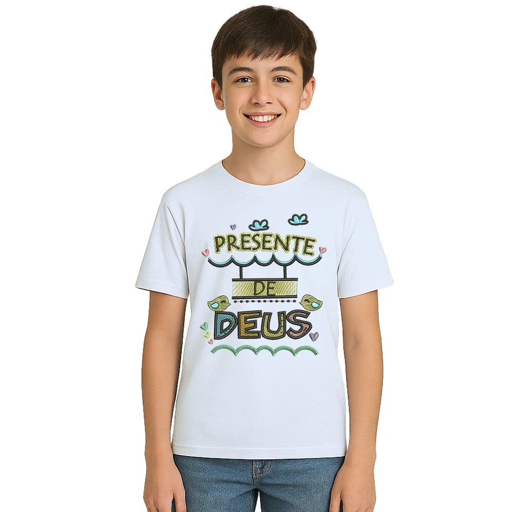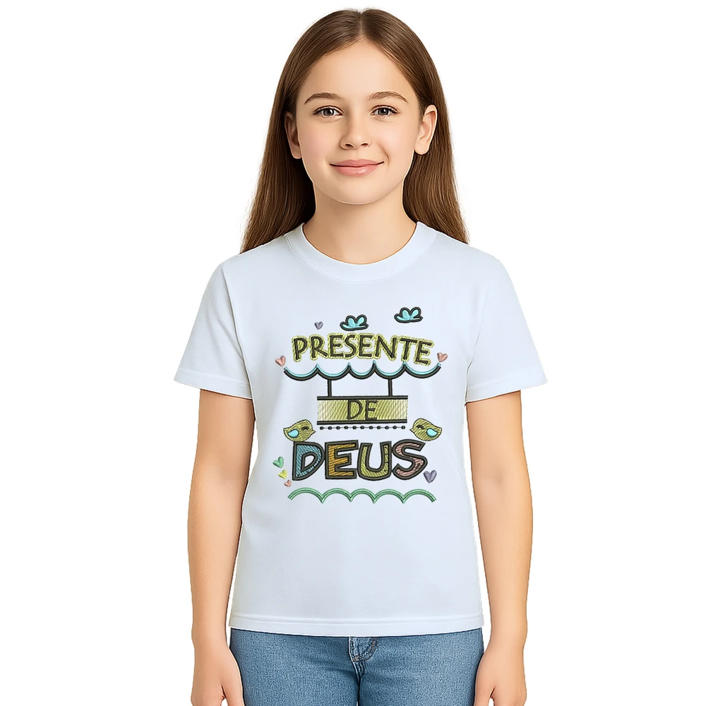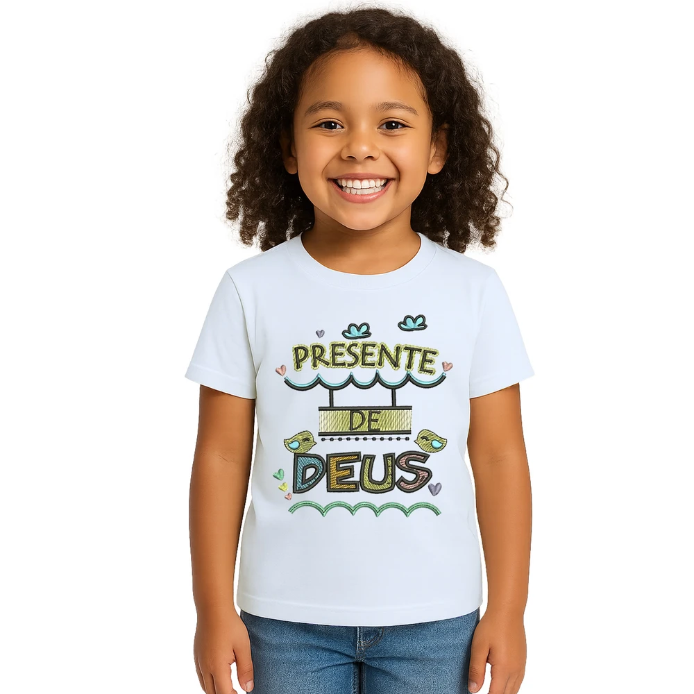 Apresentamos a Camiseta Presente de Deus Religiosa com Estampa Personalizada. Expressão de fé e amor em cada detalhe, esta camiseta une conforto e mensagem espiritual, perfeita para transmitir a gratidão por ser um verdadeiro presente divino. Confeccionada em tecido macio e resistente, garante liberdade de movimento para o dia a dia das crianças.