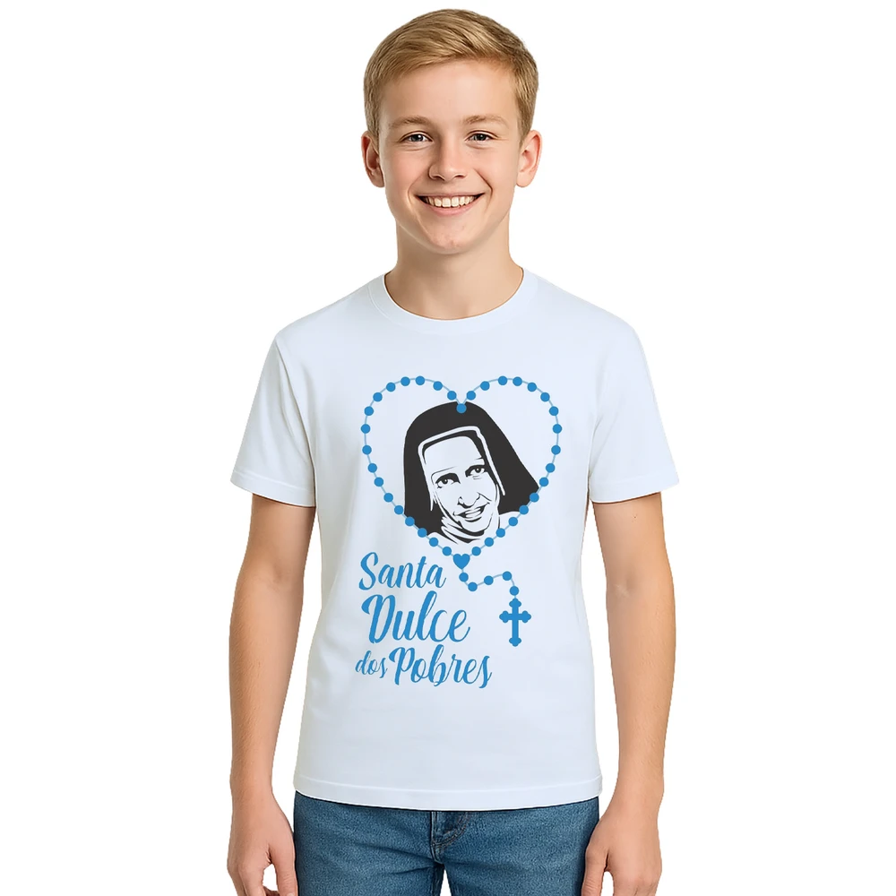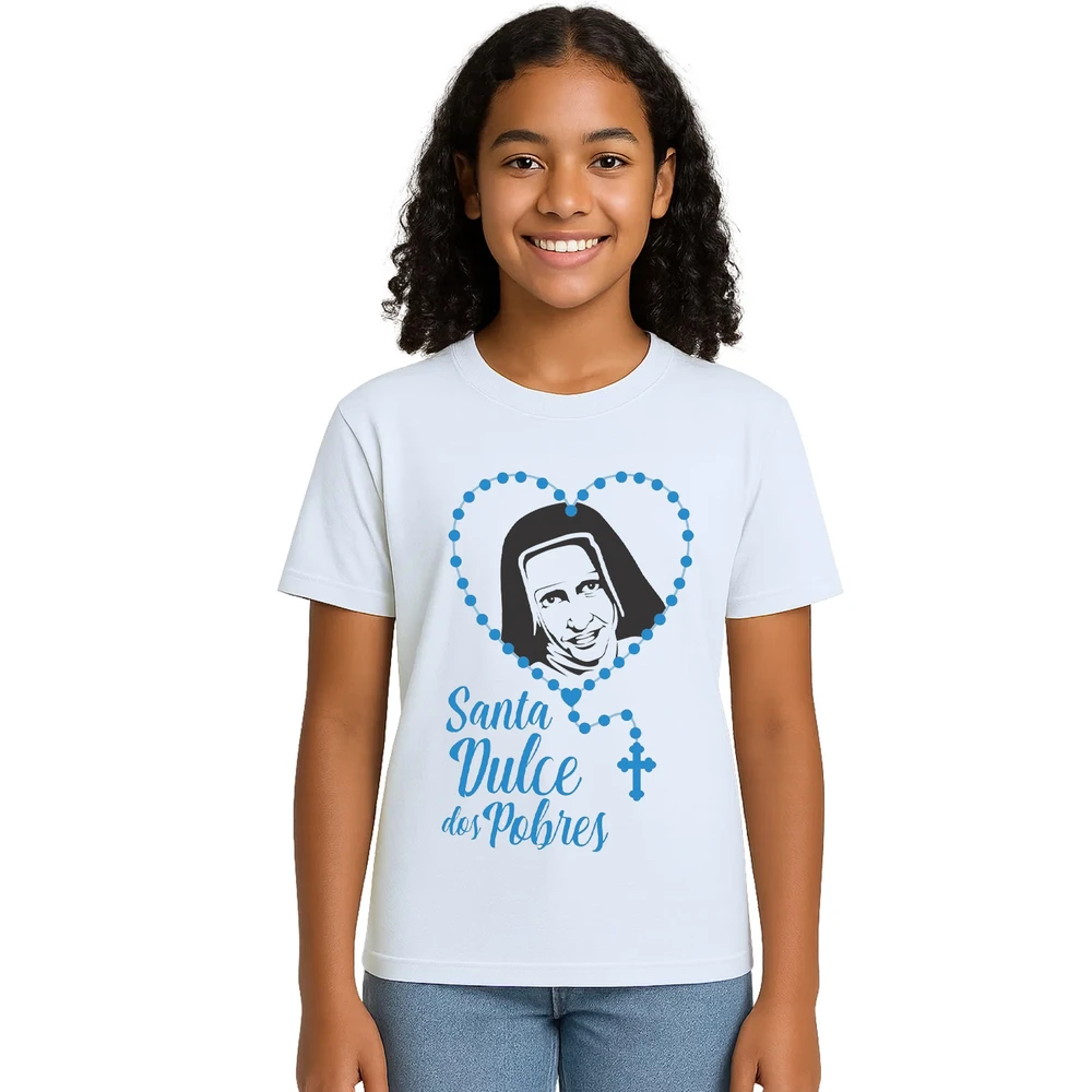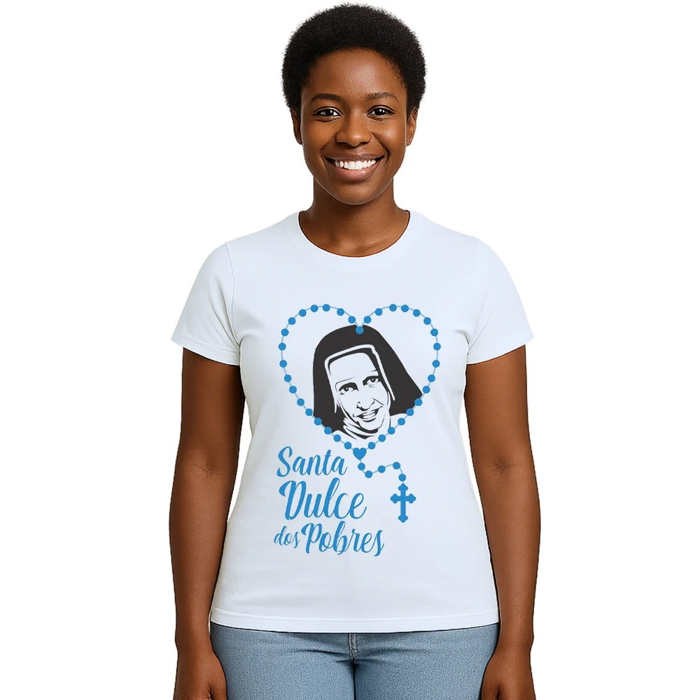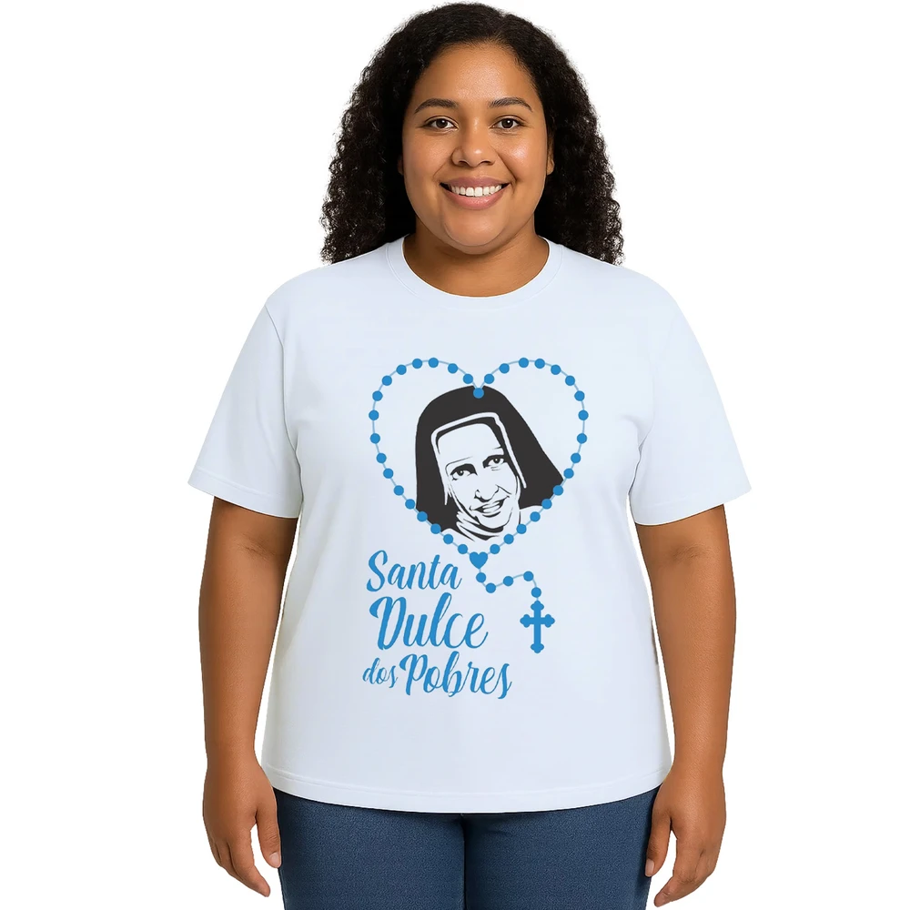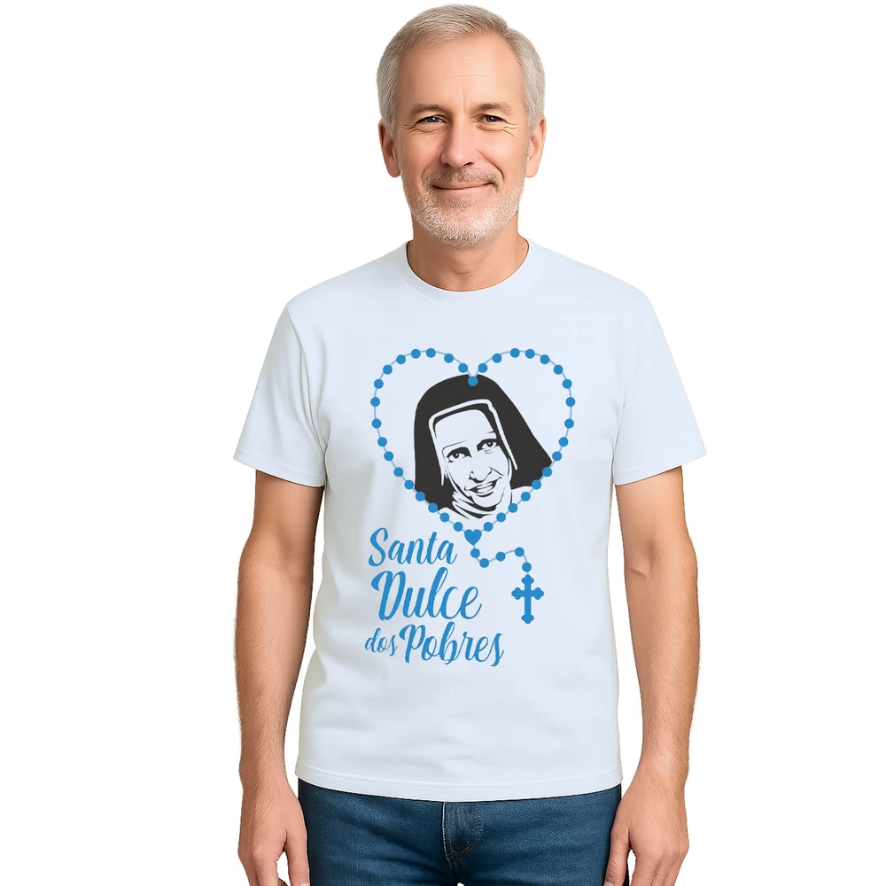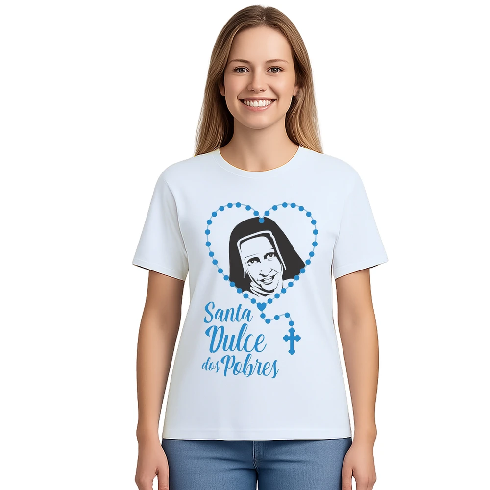 Descubra a Camiseta Santa Dulce dos Pobres Estampa Personalizada, perfeita para quem valoriza fé e estilo em um só produto. Produzida em algodão com poliéster, proporciona conforto e durabilidade para o uso diário. A estampa exclusiva traz a imagem icônica de Santa Dulce dos Pobres, simbolizando amor, esperança e solidariedade, conectando você a uma causa maior com elegância.