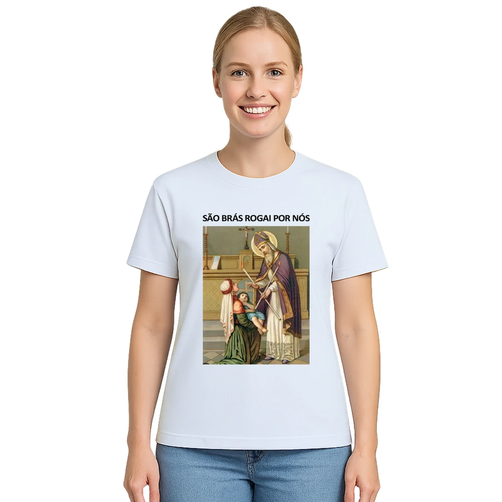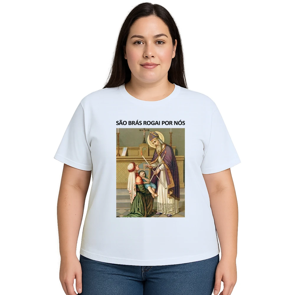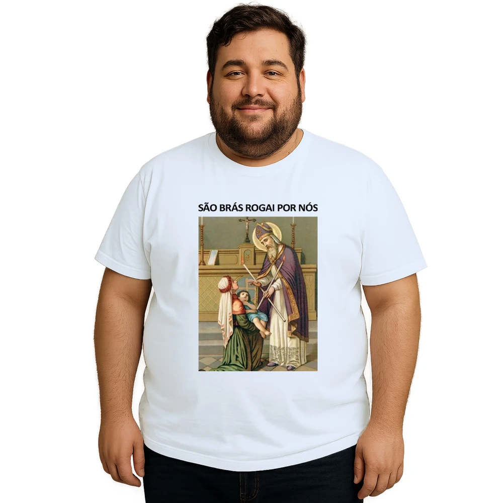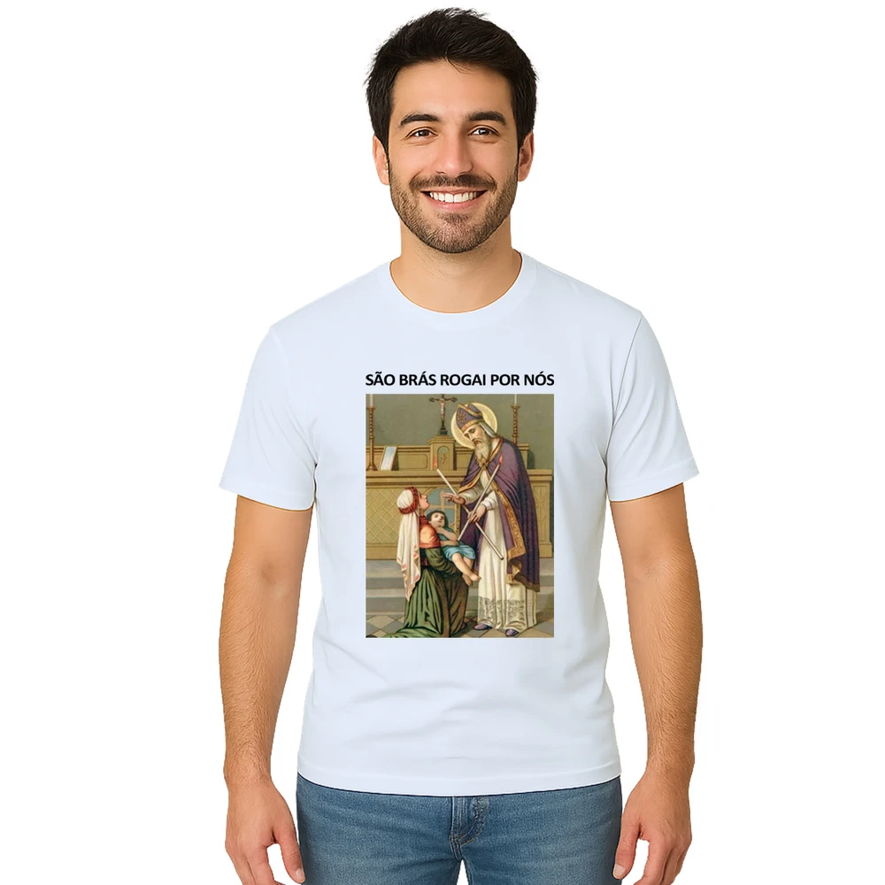 Conecte sua fé com a Camiseta São Brás Rogai Por Nós Estampa Personalizada, perfeita para quem busca proteção espiritual aliada ao conforto diário. Com estampa personalizada que representa São Brás, padroeiro da saúde e dos que buscam cura, esta camiseta une tradição e modernidade em uma peça única.